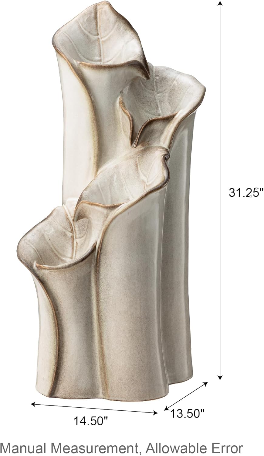 Glitzhome 31.25" H Outdoor Water Fountain with LED Lights and Pump, 4 Tier Sand Beige Lotus Leaf Textured Ceramic Floor Standing Fountain, Vase Waterfall Fountains for Porch Deck Garden Patio Backyard
