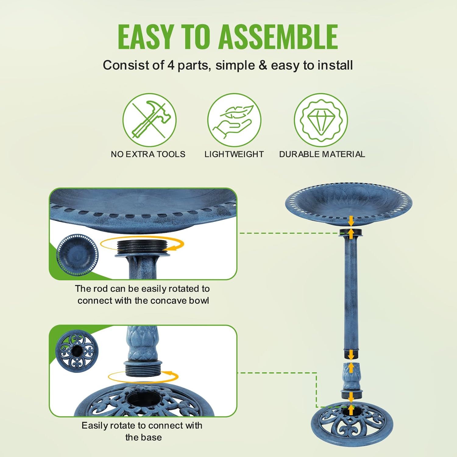 Backyard Expressions Outdoor Garden Bird Bath - Blue - Weather Resistant Polyresin - 27 Inch