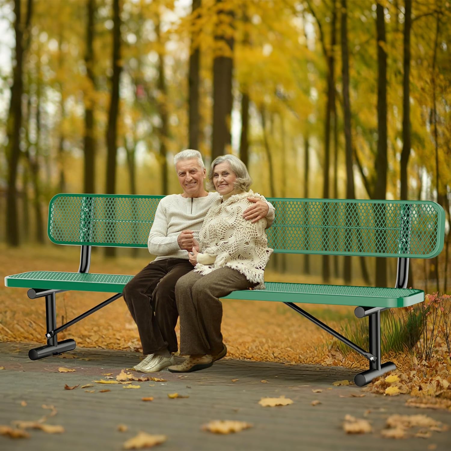 Heavy Duty Park Bench for Outside, Metal Park Bench with Back Portable Frame, Outdoor Steel Mesh Garden Bench with Backrest for Garden, Lawn, Patio, Porch, Park, Yard (Green, 8FT/95INCH)