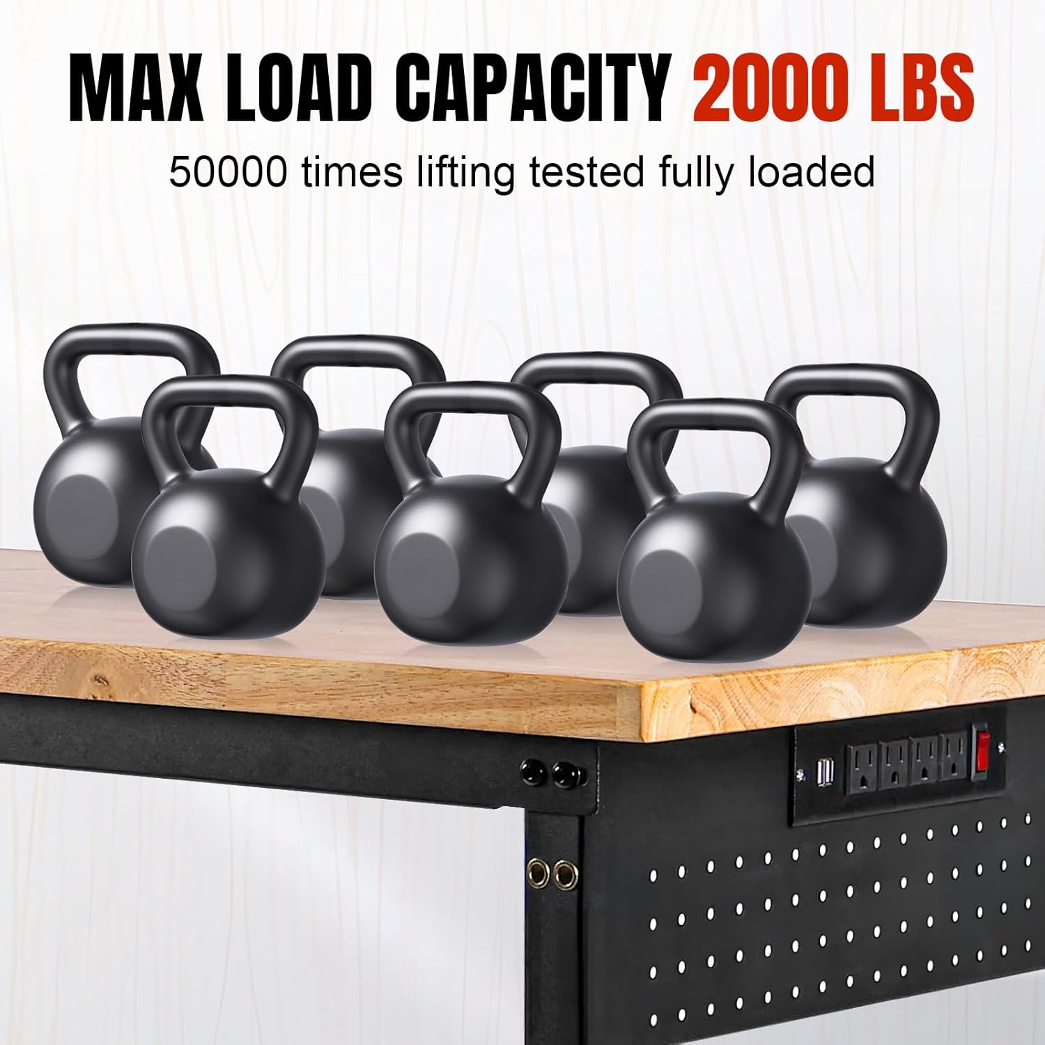 - POWER OUTLET & PEGBOARD: The ETL-certified power outlet features 4 AC outlets, 2 USBs, and 1 switch with a 9.8-foot extension cord for safety and durability. An additional pegboard allows you to efficiently organize accessories and tools to keep your workspace tidy and maximize the usefulness of your workbench.