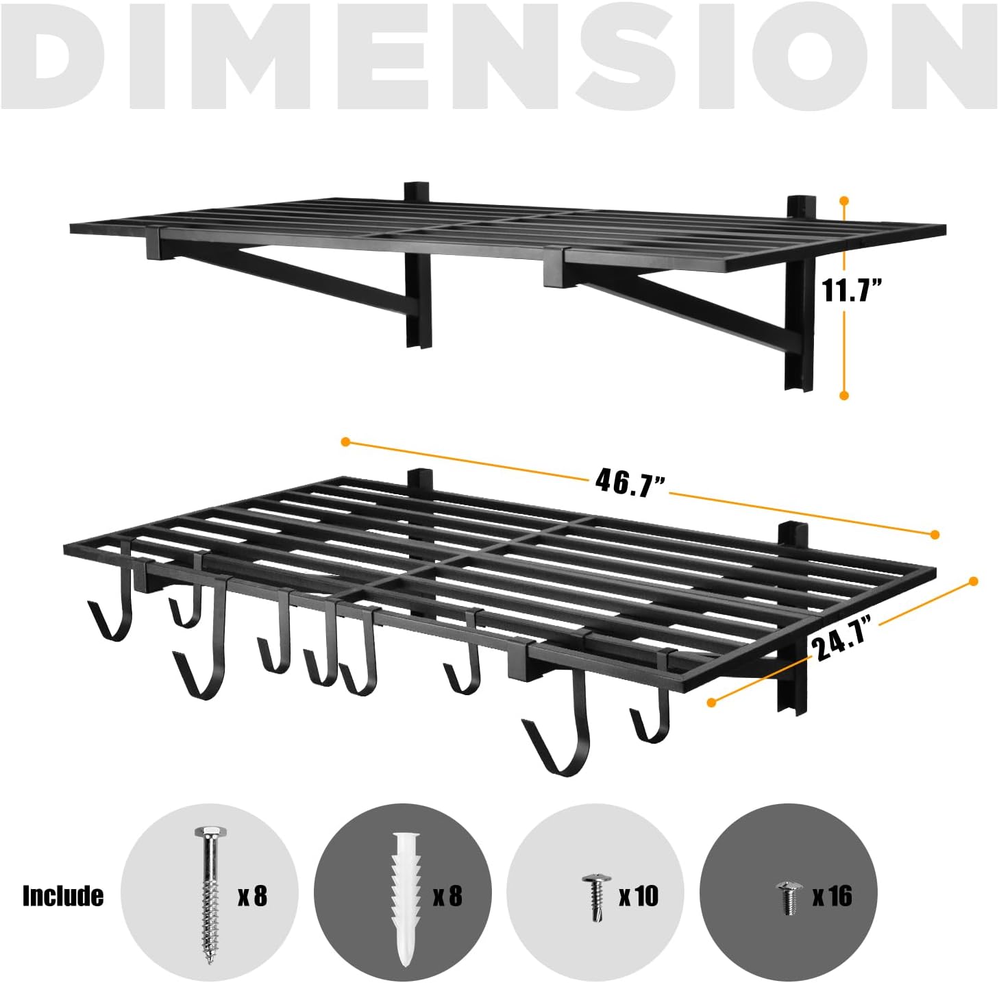 - SAVE SPACE IN THE HOME LOGISTICS: The wall mount rack can help your garage floor clean and tidy, make your garage less crowded, this garage wall shelf also comes with multiple metal hooks, can help you save a lot of space in the garage.