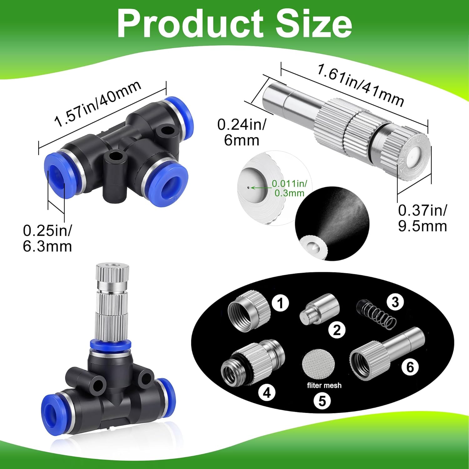 - 【1/4" Mist Nozzles Tee】: Mornajina 6.3mm / 1/4" misting nozzles tees can be connected to multiple spray nozzles to achieve uniform irrigation of large areas, and can accurately control the flow rate to meet the needs of a variety of application scenarios. Besides, it is very easy install and simple to maintain. These Mister Nozzles Tees fit most 1/4" tubing pipe.