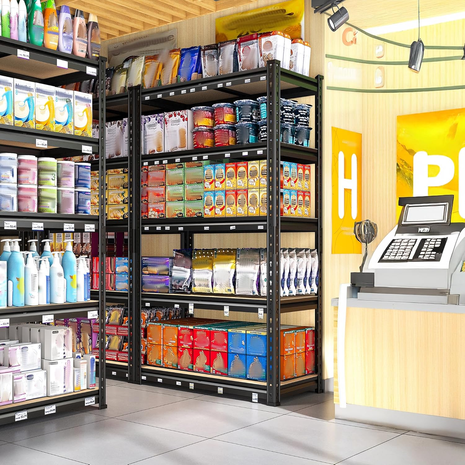 - ă11.8"D x 27.6"W x 60"H Multifunctional Heavy Duty ShelvingăThe perfect size metal shelf is suitable for garage, pantry, kitchen, basement, closet, living room, storage room, library, office, school, warehouse, supermarket and other different spaces. The shelves not only expand your storage space and make your home more clean, but the open space allows you to find items at a glance