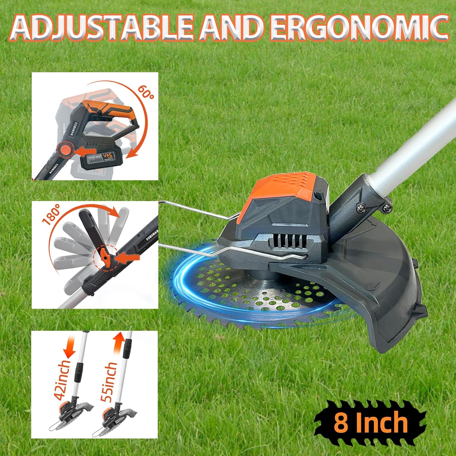 - 【🧰Ergonomic Weed Wacker Cordless】The electric weed wacker features an adjustable telescopic shaft (42-55") that suits users of all heights. It's lightweight and perfectly balanced, so you can conquer your entire yard without breaking a sweat—no sore muscles, just a beautifully manicured lawn!