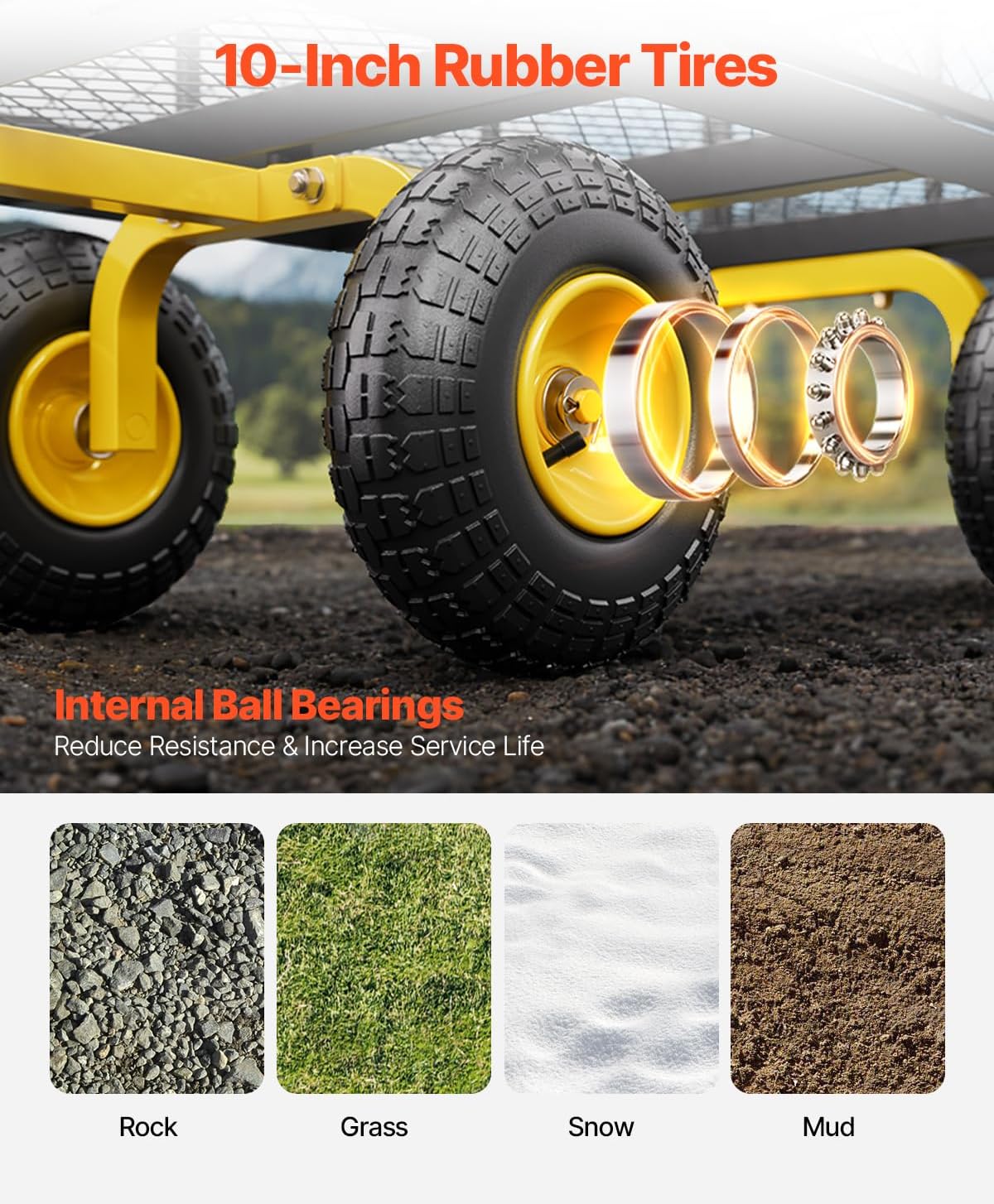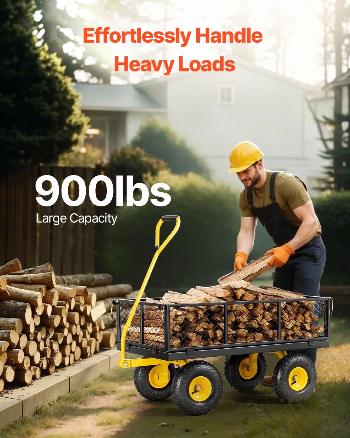 VEVOR 900 Lbs Heavy Duty Steel Garden Cart, Garden Wagon Cart on Wheels, Outdoor Metal Yard Utility Wagon Carts with 10" Tires and Mesh Removable Sides(Convert to Flatbed) and 180°Rotating Handle