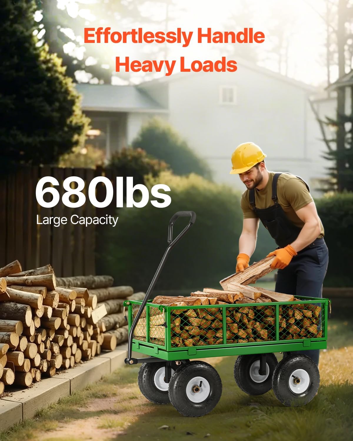 - 680-lb Load Capacity: This garden cart is specially designed for transporting heavy items with ease. Whether you're moving soil, stones, or heavy tools, its 680-lb capacity allows you to carry everything in one trip, reducing back-and-forth effort and making your tasks more efficient and hassle-free.