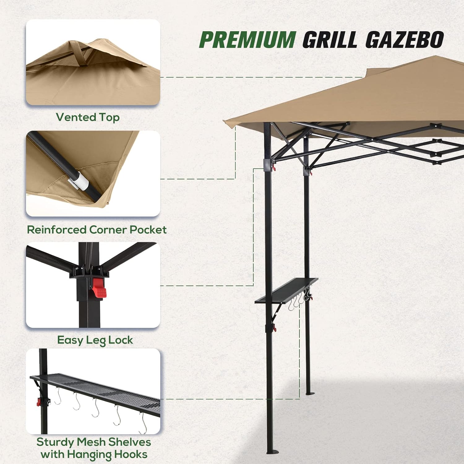 COOS BAY 8x5 Pop up Grill Gazebo Portable BBQ Gazebo Canopy Tent with Carry Bag, Outdoor Barbeque Shelter, Beige