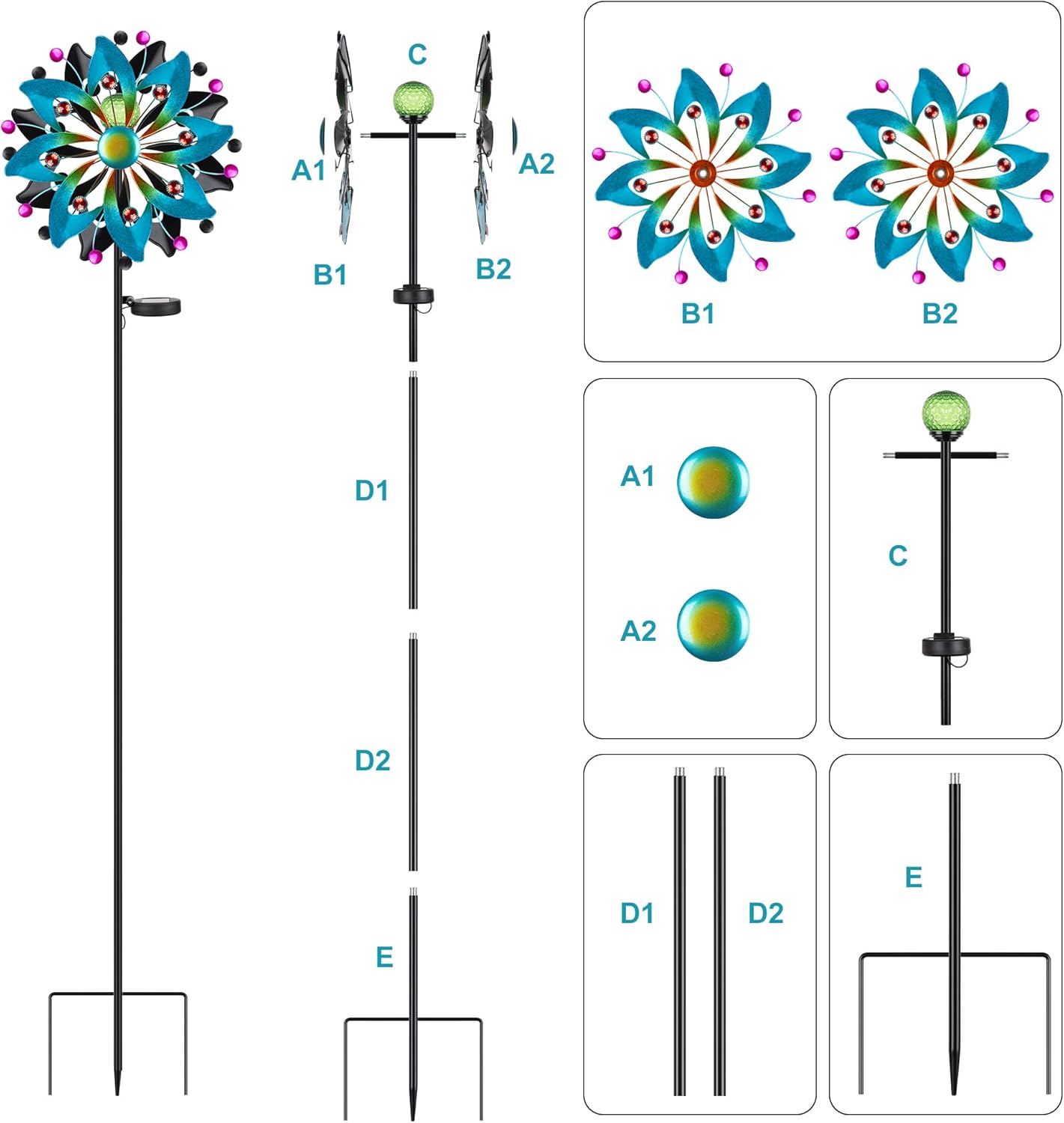- EASY SPINNING AND INSTALLATION: Wind spinners for outside utilizes high quality low friction bearings that can rotate 360 degrees at low wind speeds. The metal wind spinners can be installed by simply twisting and tightening each part without any tools, once assembled, insert it into loose soil and you have a garden wind spinners outdoor and spinner that looks like a work of art.