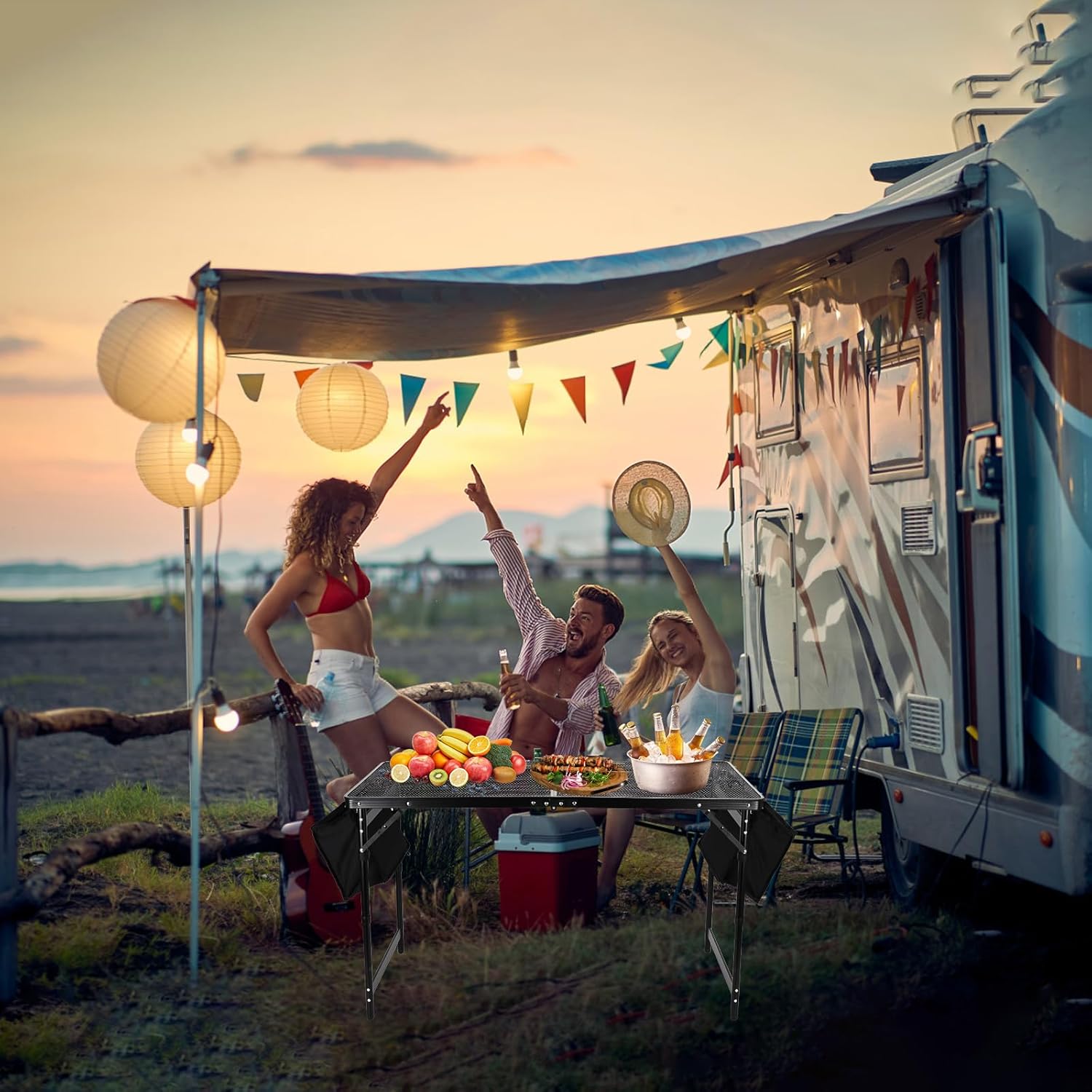 Grill Table 4FT Camping Table with 7/15 L Storage Bag 3 Height Adjustable Picnic Table Foldable Folding Portable Stand Mesh Outdoor BBQ