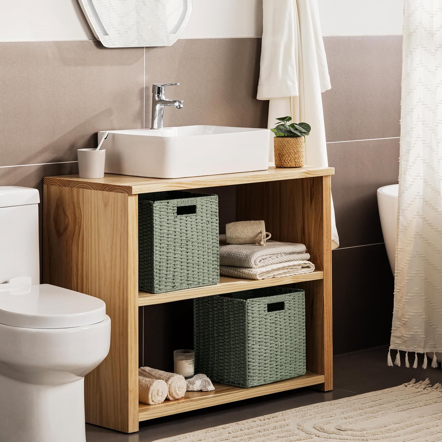 UBBCARE 2 Pack Wicker Basket, 11.8L×11.8H×11W inch Woven Paper Rope Storage Baskets for shelves, Foldable Cube Storage bin with Handle, Storage Basket for Organizing & Decor, Green