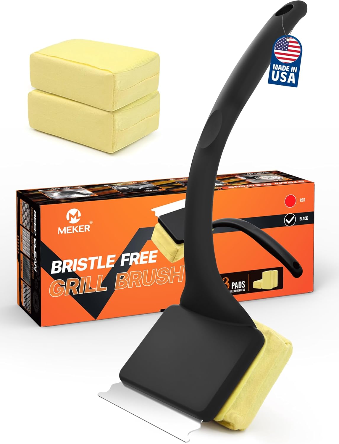 - SAFE & EFFICIENT CLEANING: Worried about bristles in your food?Our MEKER Bristle-Free Grill Cleaner Brush ensures peace of mind by eliminating wire bristle risks, providing an effective clean for stubborn residues without contaminating your food. Perfect for safer grilling experiences