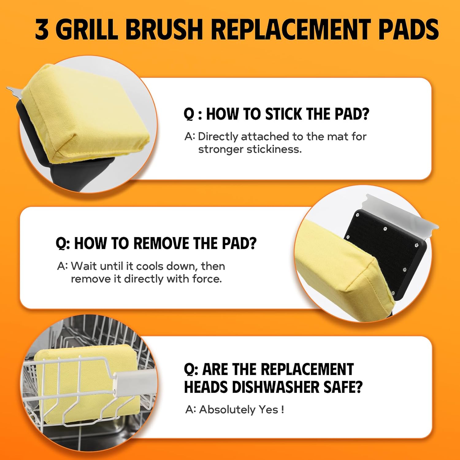 - CONVENIENT AND EASY MAINTENANCE: Featuring a removable head with strong ADHESION, this Bristle-Free Grate Cleaner is dishwasher safe, and its built-in hanging hole provides easy storage, keeping your grill brush ready for your next barbecue. ( Tips: If replacement pad is required, wait until the replacement head cools down before pulling it off with force.)