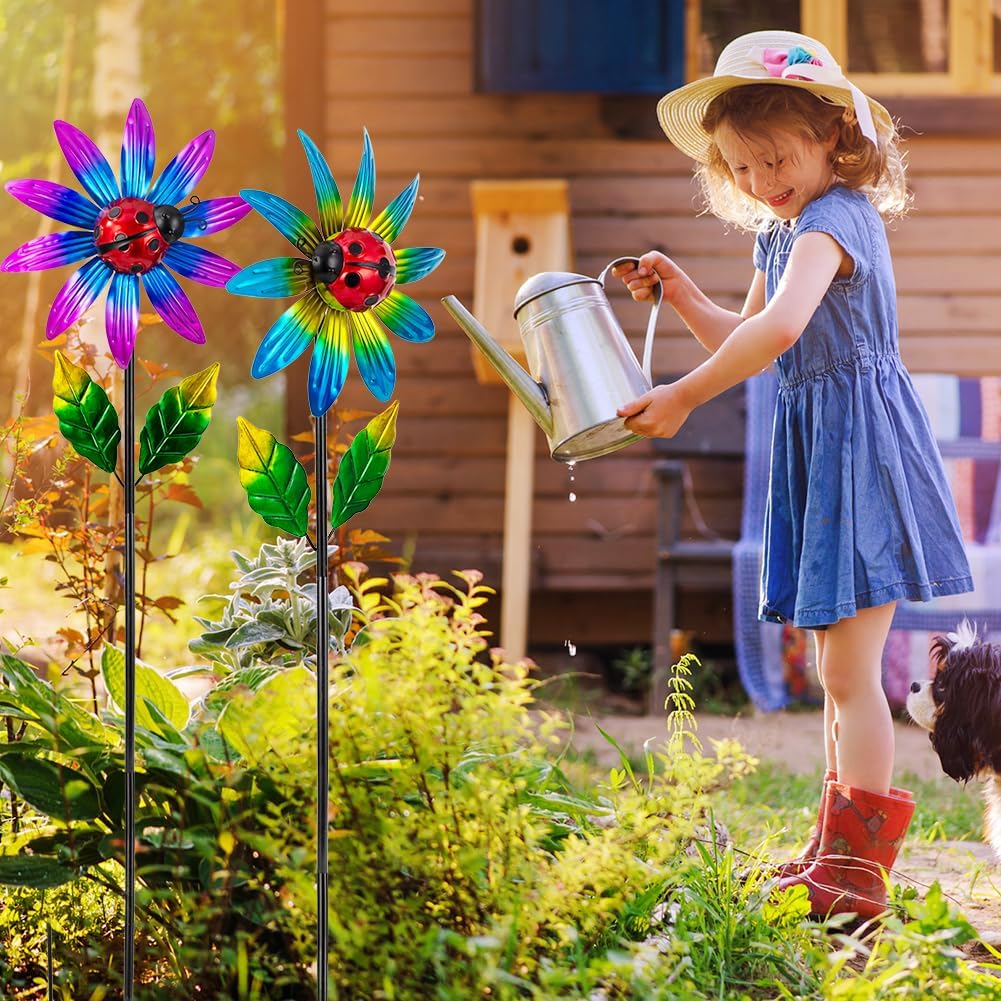 - Unique Design: This garden wind spinners feature flower elements, the bearing cover is designed as a ladybug, adds agility and vitality to the windmill. They will demonstrates a lovely show in the wind, adding fun and color to your outdoor