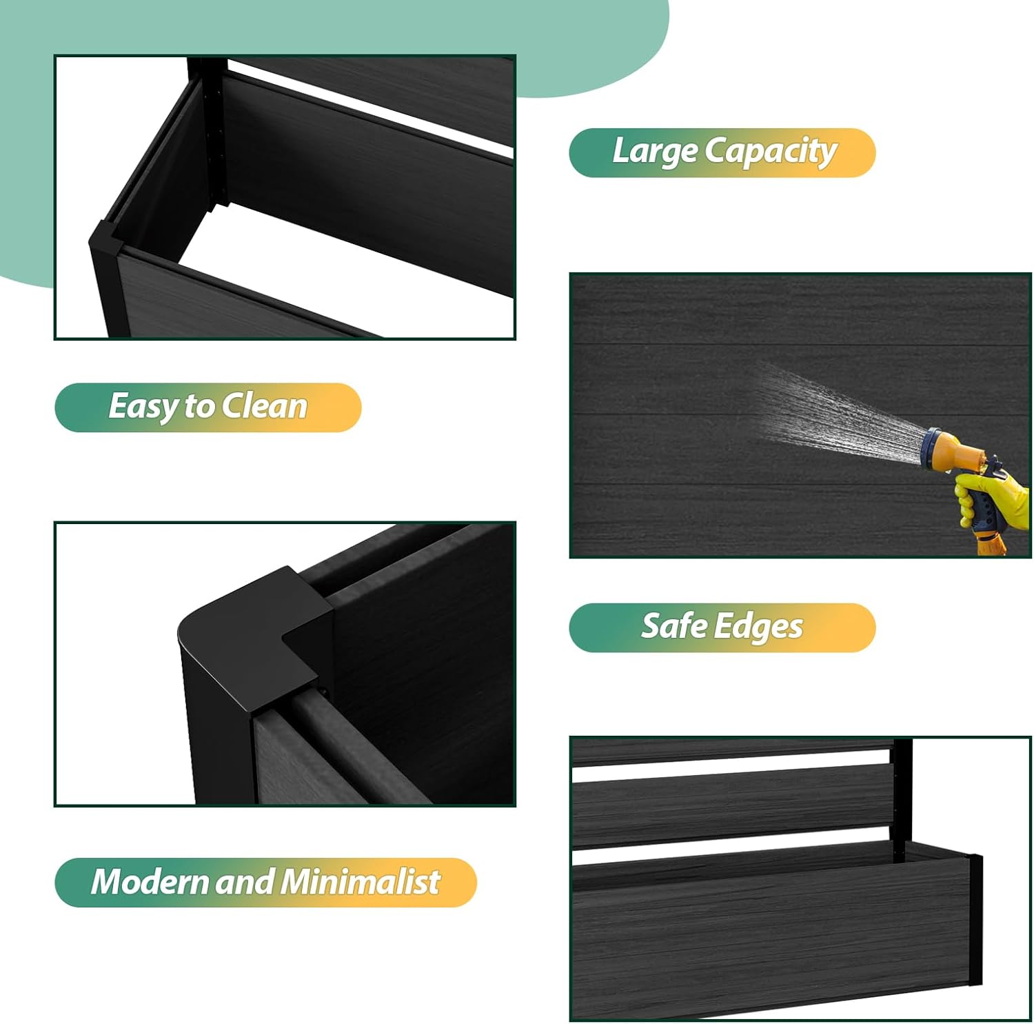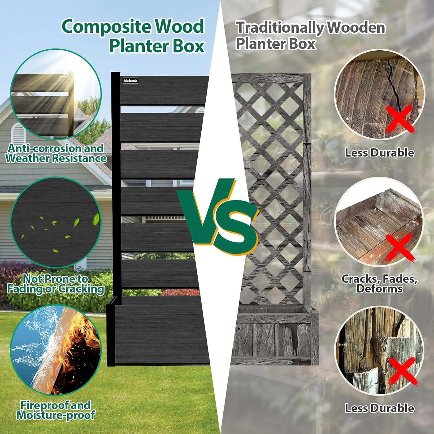 - Durable & Weather-Resistant: Built with weather-resistant composite wood and high-quality aluminum, this planter bed is designed to withstand hot summers, cold winters, and everything in between, ensuring long-lasting beauty and functionality.