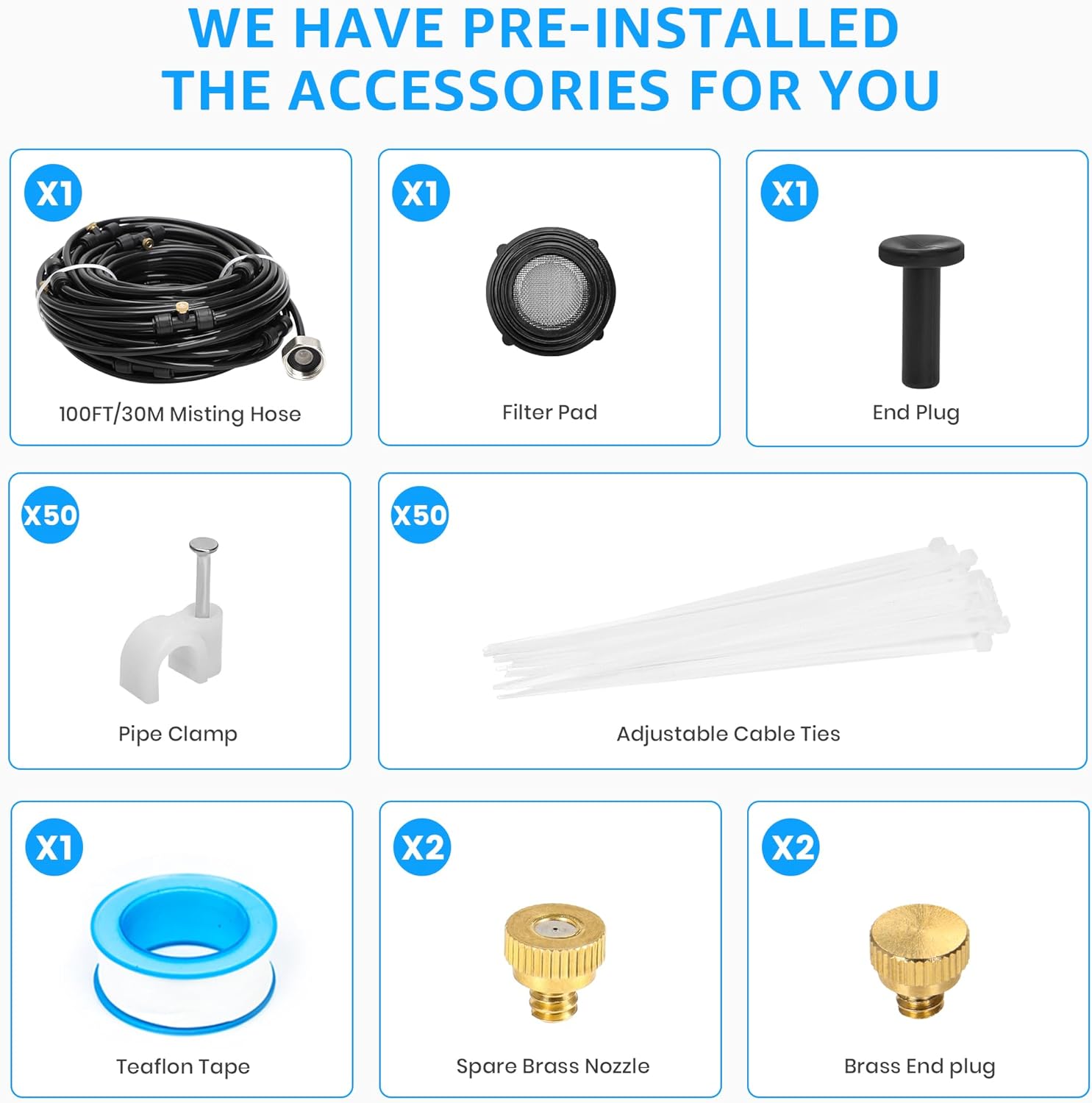 - 【Smart Design, Smarter Upgrades】27 nozzles for precision coverage: Space nozzles closer (12") for intense cooling or wider (18") for gentle mist. Includes 3/4" brass adapter with filter (fits all US faucets), washers, and repair plugs. Cut or expand the line freely – no wasted resources!