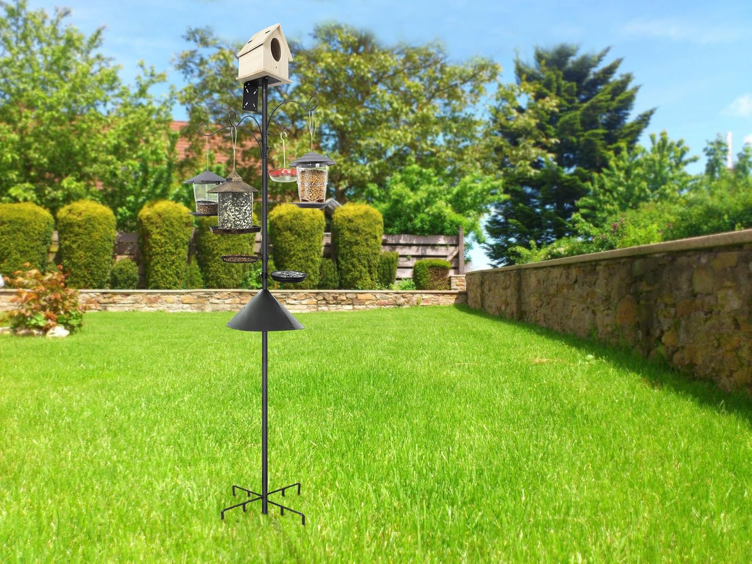 - 【Versatile Bird Feeder Pole】Adjustable 6-section heavy duty pole (47"-92"). 4 free-sliding shepherds hooks for outdoor holds bird feeders, plants, or lights. Wide top platform fits birdhouses & smart bird feeder with camera (side/top mount).