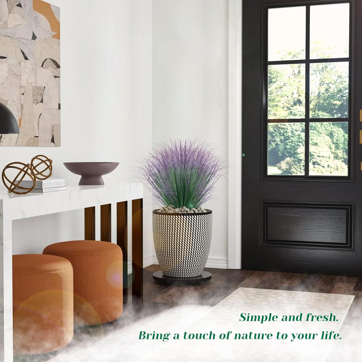 - 【VIVID FAKE GRASS STEMS】 Faux wheat grass is an ideal companion for indoor plants or rustic greenery. You don’t have to worry about mosquitoes brought by real grass. It resists UV rays and remains a vibrant green all year round and will keep a fresh look for years to come.
