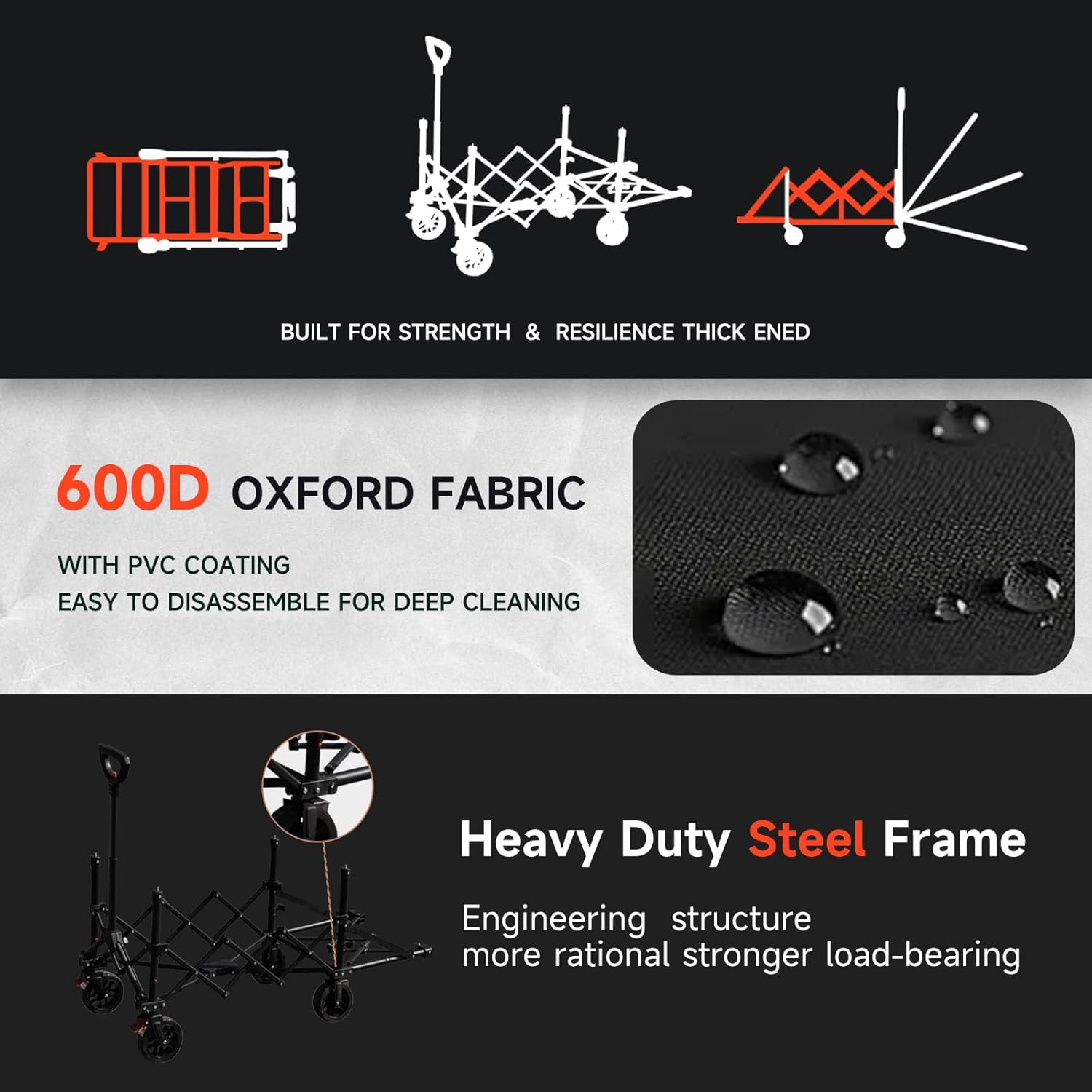 - 【Extra Space-extended tailgate】 The collapsible wagon with tailgate features the latest tailgate design, which increases storage space by 50% when opened, making it easier to access and store items.