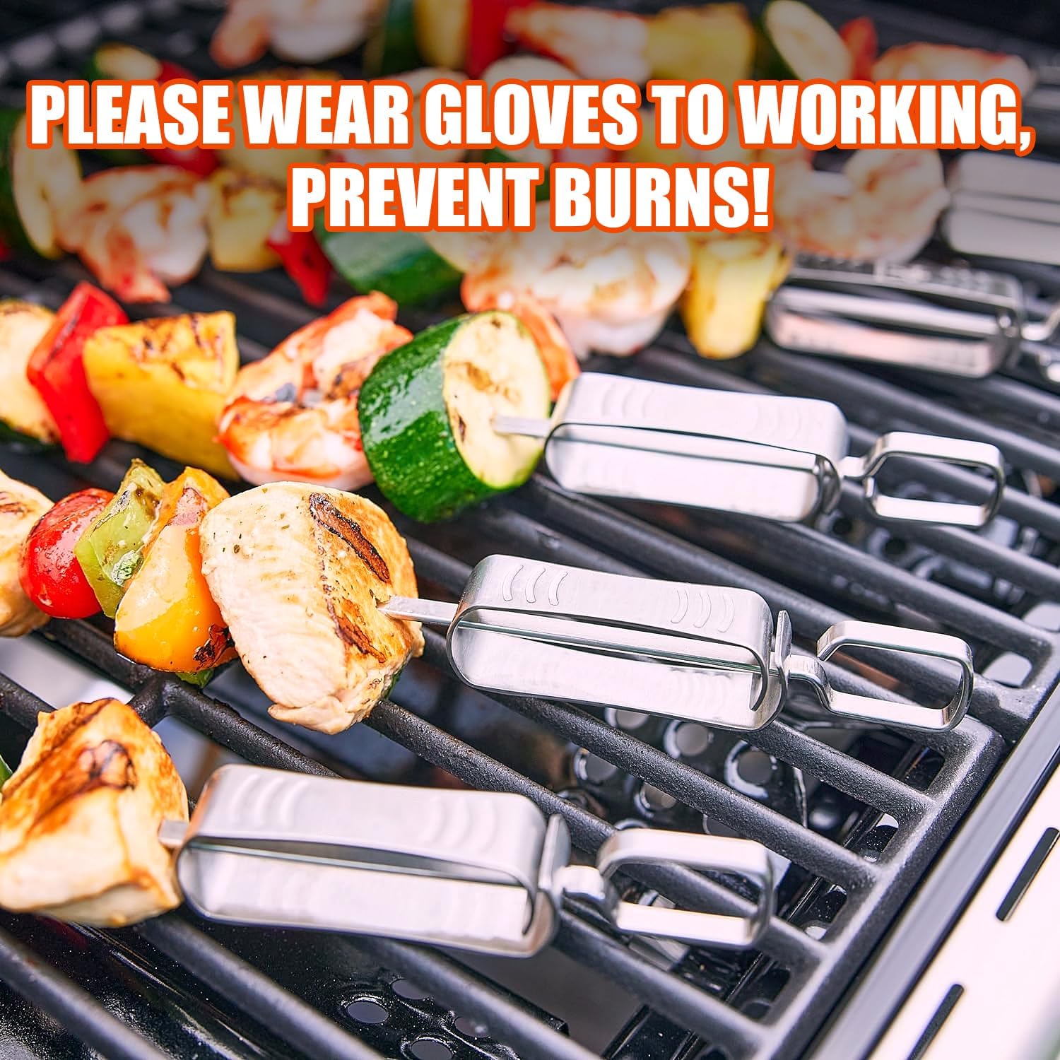- Ergonomic Heat-Resistant Handles & Anti-Slip Design: Flat, textured handles stay cool during grilling and provide a secure grip. No more burnt fingers! The tapered tip ensures smooth threading of meats, veggies, and even delicate shrimp