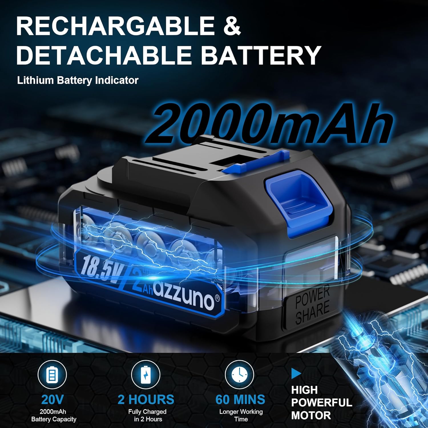 - 【Cordless Design Flexible Operation】The AZZUNO cordless hedge trimmer comes with removable lithium-ion battery (20V 2000mAh), allowing you to say goodbye to tangled cords. Fully charged in just 2 hours, each battery provides up to 45-60 minutes of runtime, letting you trim anywhere without needing a power outlet or extension cord. Perfect for reaching every corner of your garden and boosting your work efficiency