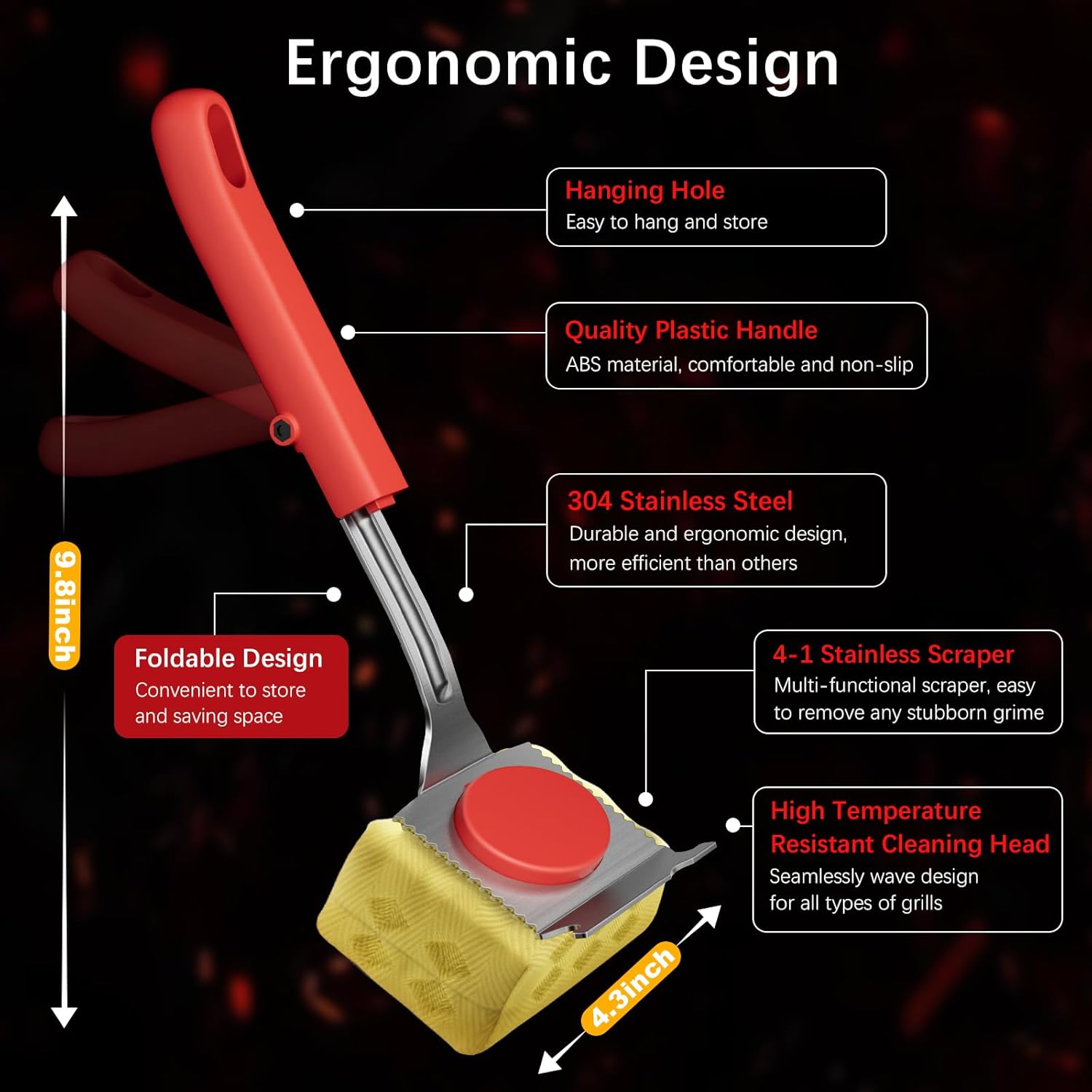 - ใ๐๐ฉ๐๐๐ ๐๐๐ฏ๐ข๐ง๐ ๐ ๐จ๐ฅ๐๐๐๐ฅ๐ ๐๐๐ฌ๐ข๐ ๐งใThe steam grill brush can be folded to 9"x4.2" compact size, which fits in grill tool drawers or camping kits. Come with a hanging hole, easy to store. After use, you can remove the cleaning brush pad from the handle, put it in the dishwasher and hang to dry. Great Gifts for Men/Dad and suit for various grill types, including gas, charcoal, smoker, porcelain, and infrared grills.