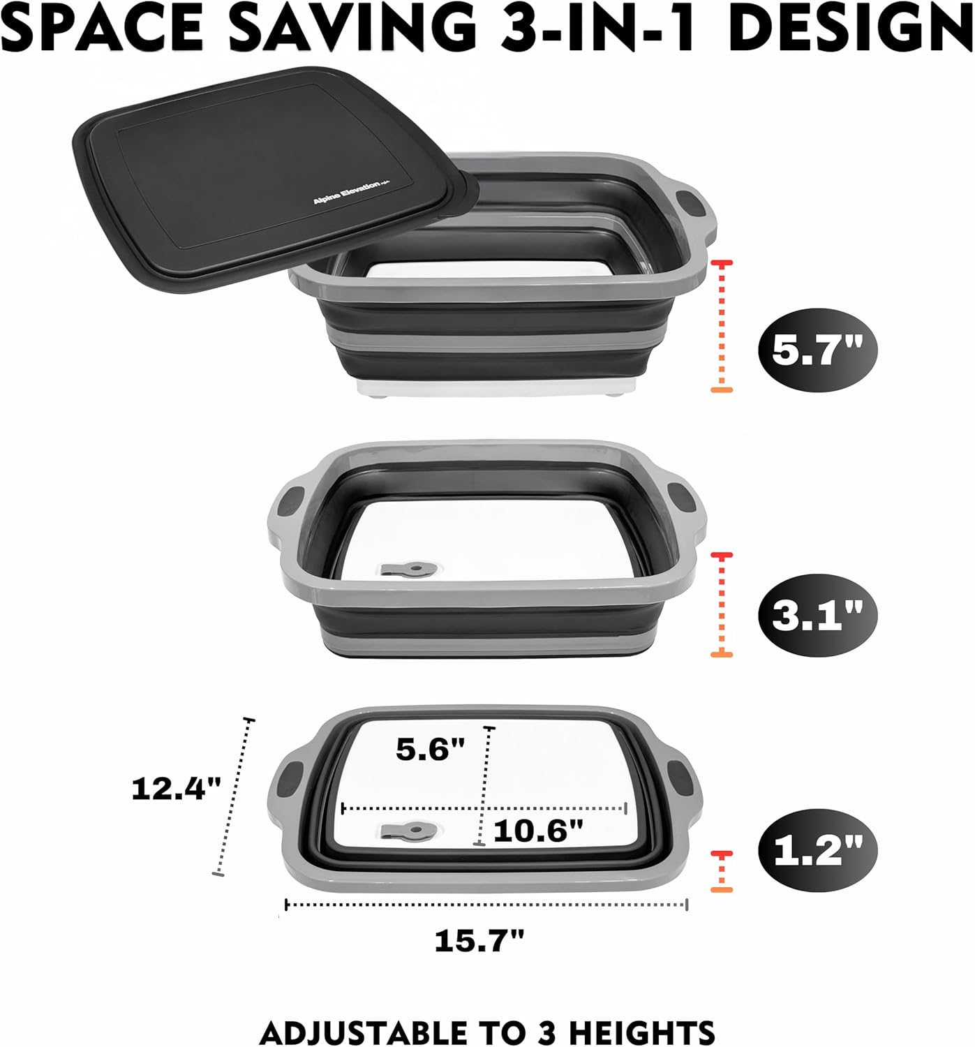 - Shape-Shifting Magic – Collapsible Design – Use fully expanded for large meal prep, half-collapsed for small batches, or fully flat for slicing or serving. Folds down to 1.5" for easy storage—perfect for camping, BBQs, RVs, tailgating, and small kitchens.