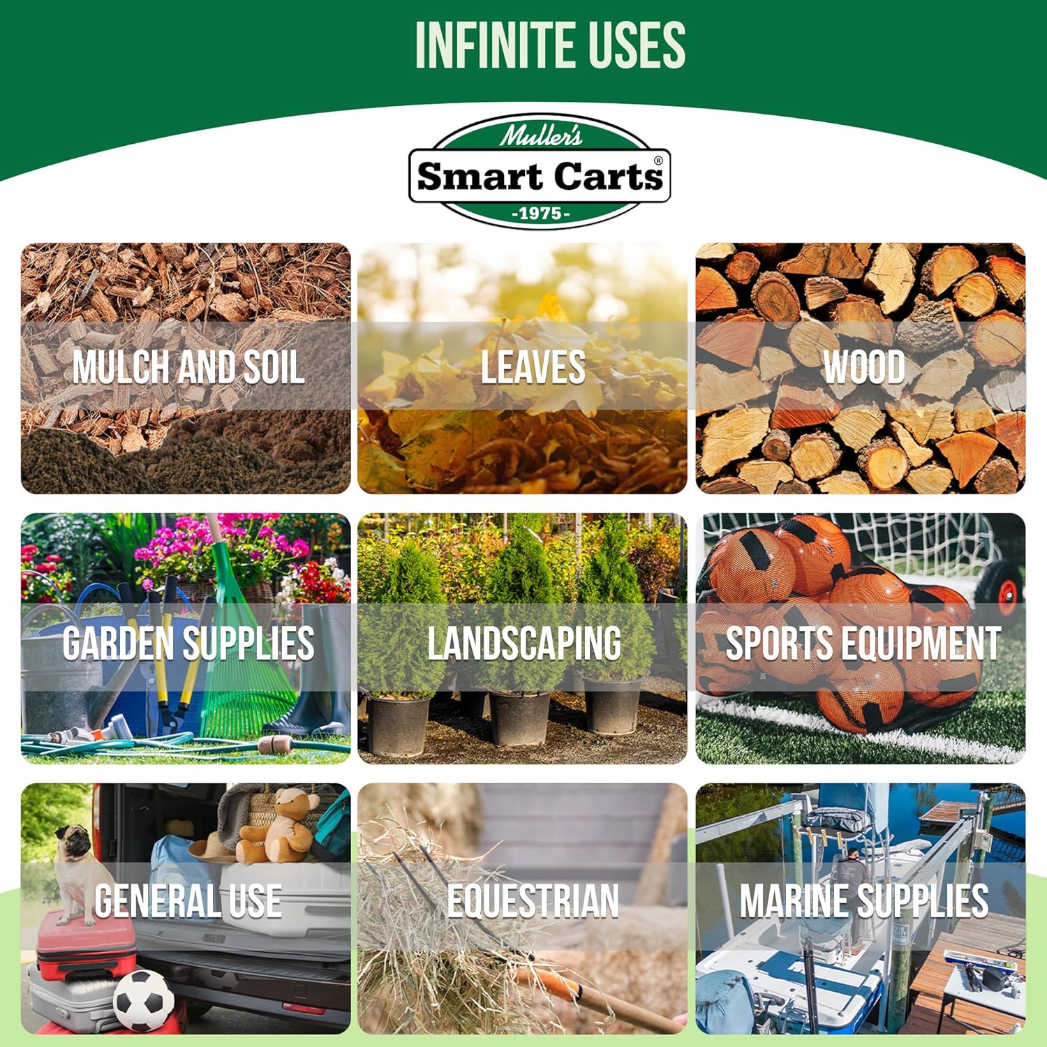 - ENDLESS USES: Gardening, landscaping, wood-stacking, farm, equestrian, sports equipment, marina cart, general use and transportation of any large and heavy items