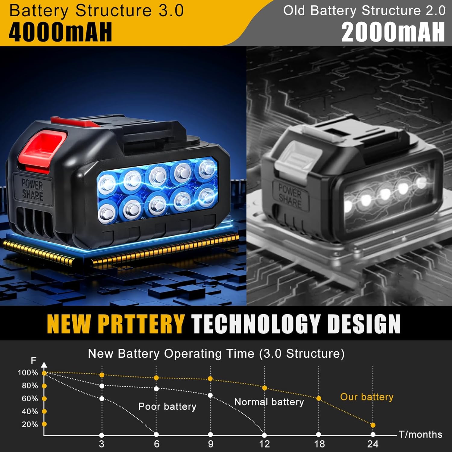 - Brand New Accessories and 2 Years Warranty: String trimmer Set: 1 Lawn Mower, 2 21V 4.0Ah Batteries, 1 Charger, 4 Metal Blades, 10 Plastic Blades, 1 Safety Cover, 1 User Manual. We will also provide a 2-year warranty. If you have any product issues, please feel free to contact us by email, we will respond to you within 24 hours.