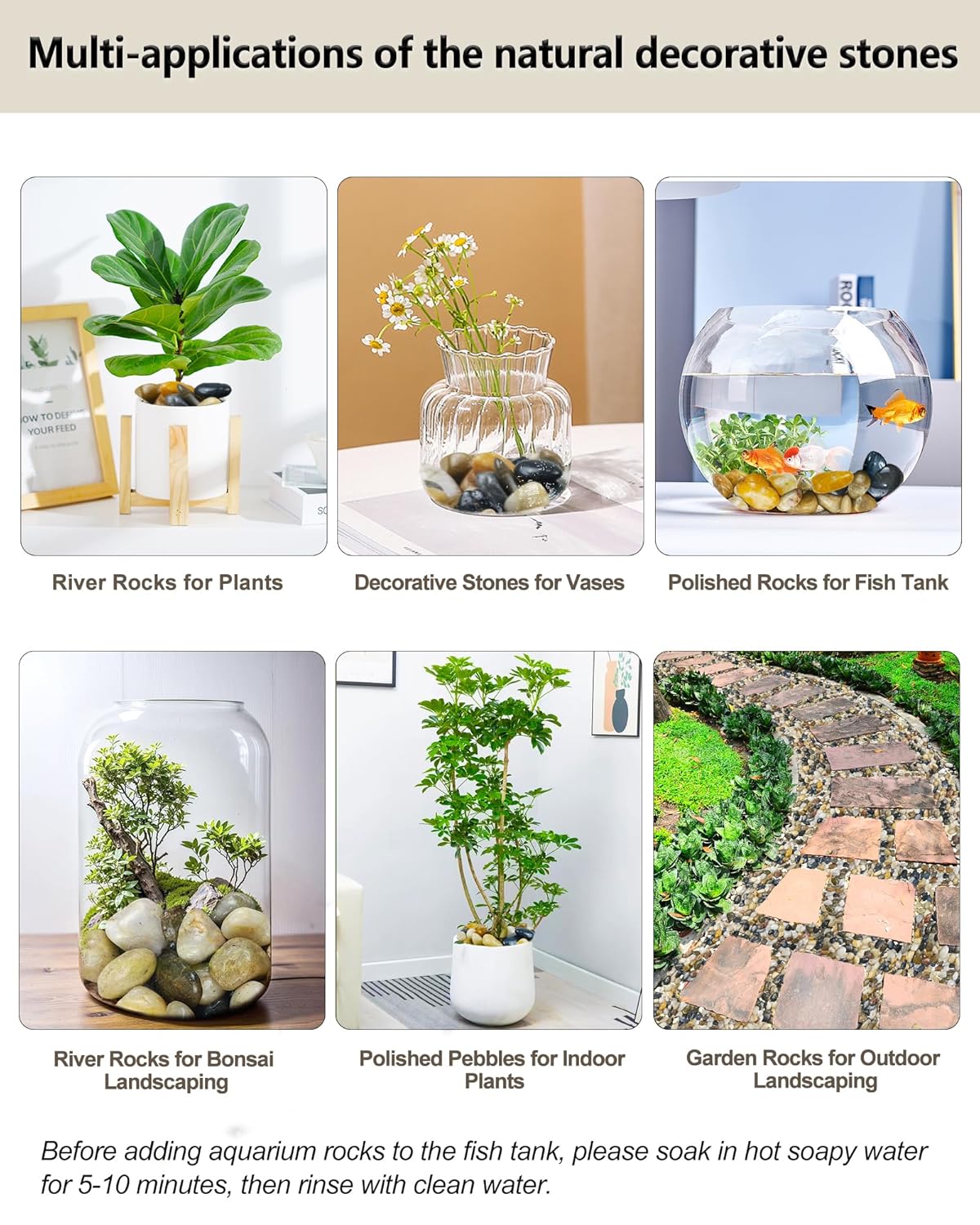 - 【Aquarium & Vase Decorative Gravel】 Safe for freshwater aquariums, turtle tanks, and fish bowls. Also suitable as vase filler or terrarium base. Rinse stones thoroughly with clean water before use in aquatic environments.
