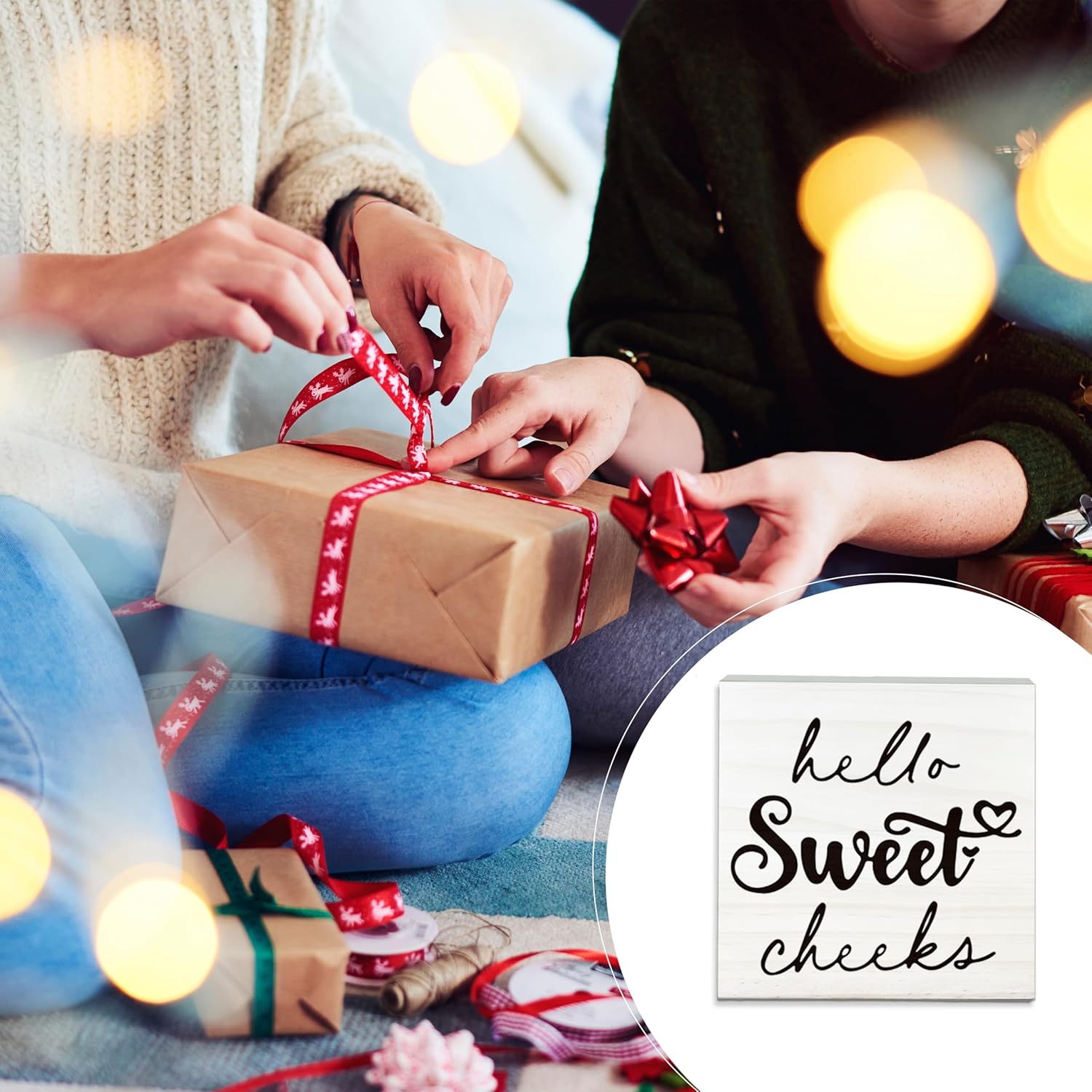 Hello Sweet Cheeks Wooden Sign - Funny White Block Plaque Desk Decoration - 5x5 inches Rustic Wood Block Gifts for Friends Family - Restroom Bathroom Toilet Tabletop Favors & Supplies-A08