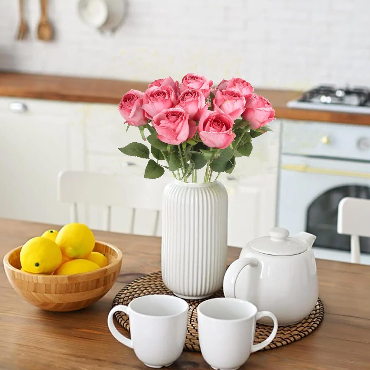- Lifelike and Timeless: The soft and smooth silk petals, with curled burnt edges replicate fresh roses. Unlike fresh, each faux rose has subtle veining and moisture-like sheen, creating an irresistibly natural look, maintaining its beauty for a long time
