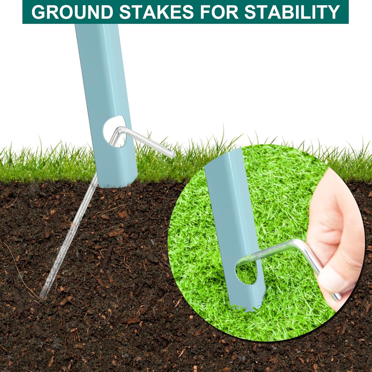 VINGLI 8FT Ornamental Windmill Backyard Garden Decoration Weather Vane, Heavy Duty Metal Wind Mill w/ 4 Legs Design,Light Blue
