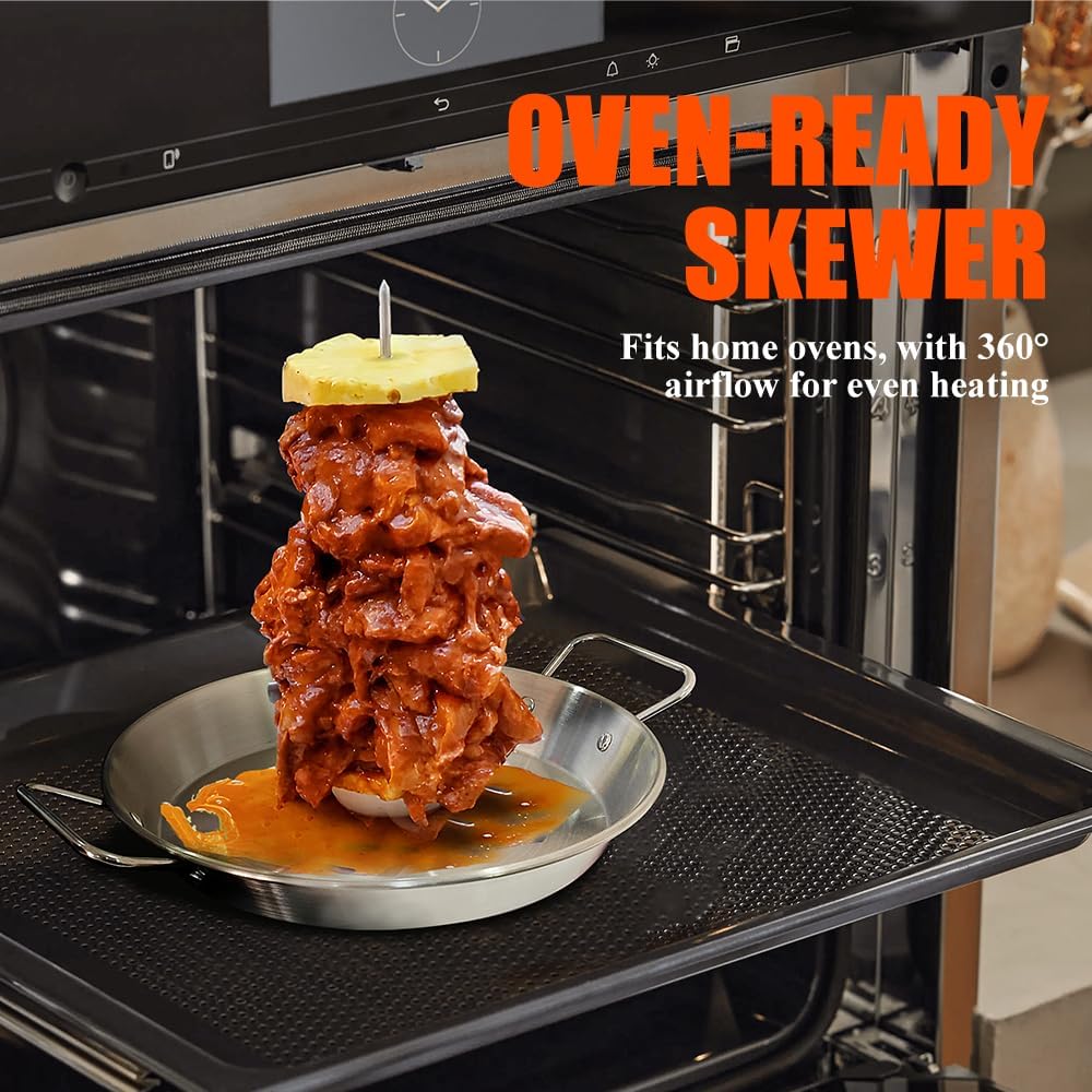 - Perfect for Making Tacos Al Pastor, shawarma, and Gyros at Home: With our vertical skewer, you could just use your oven or your regular Grill to make restaurant-style Gyros, Al Pastor, Shawarma, Doner, Kebabs, Whole Chicken, Fish, even Brazilian Churrascaria dishes right on your own grill or oven. No Rotisserie is needed to make the most flavorful meat you've ever tasted