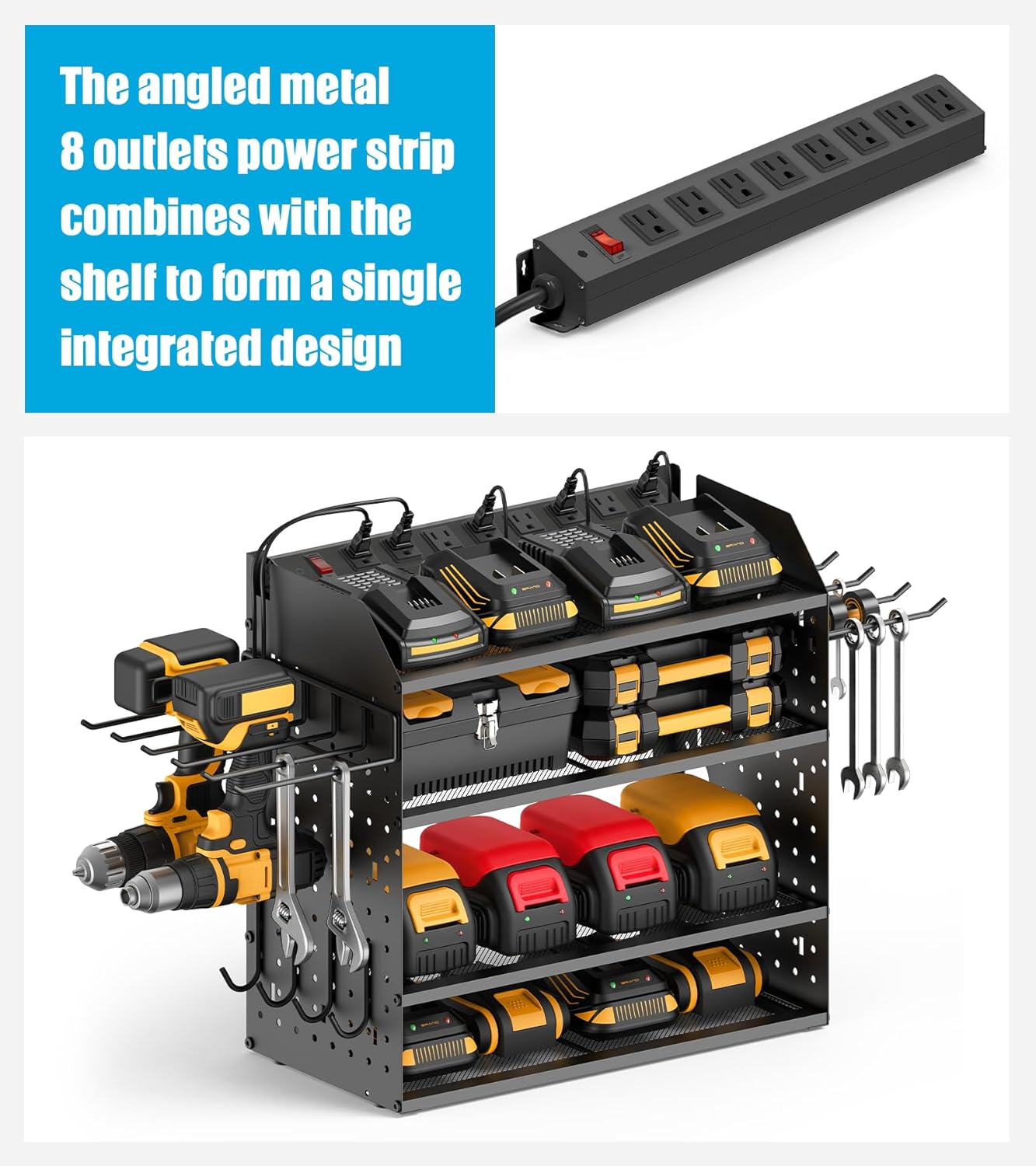 CCCEI Modular Desk Power Tools Organizer with Charging Station, 4 Layer Drills Battery Storage Wall Mount, Garage Shop Organization, Anniversary, Birthday, Gifts for Men, Father, Black, 10FT Cord.