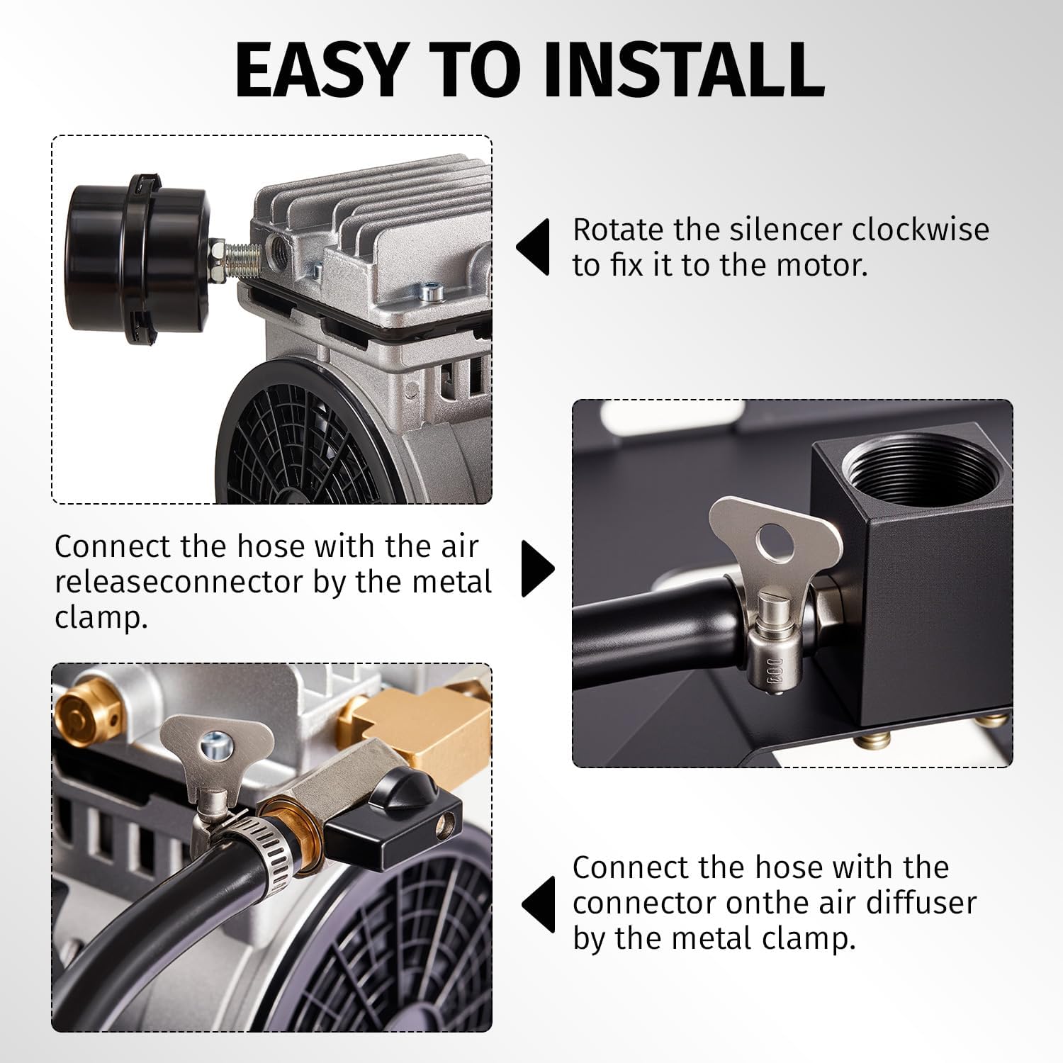 - 5. It is suggested to put the compressor in a pond aerator weatherproof outdoor cabinet,These precautions will lead to less dust and prolong the life of your machine.