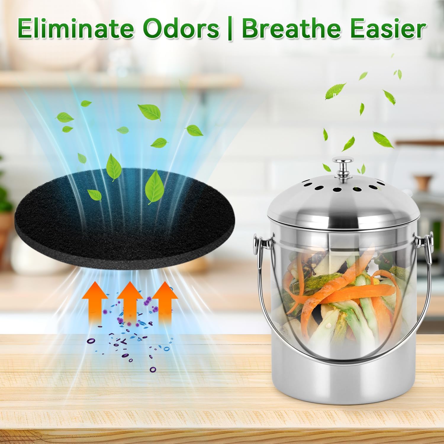 - Superior Odor Elimination: Our charcoal filters effectively absorb and neutralize odors in your compost bins or trash cans, keeping your kitchen naturally fresh and odor-free