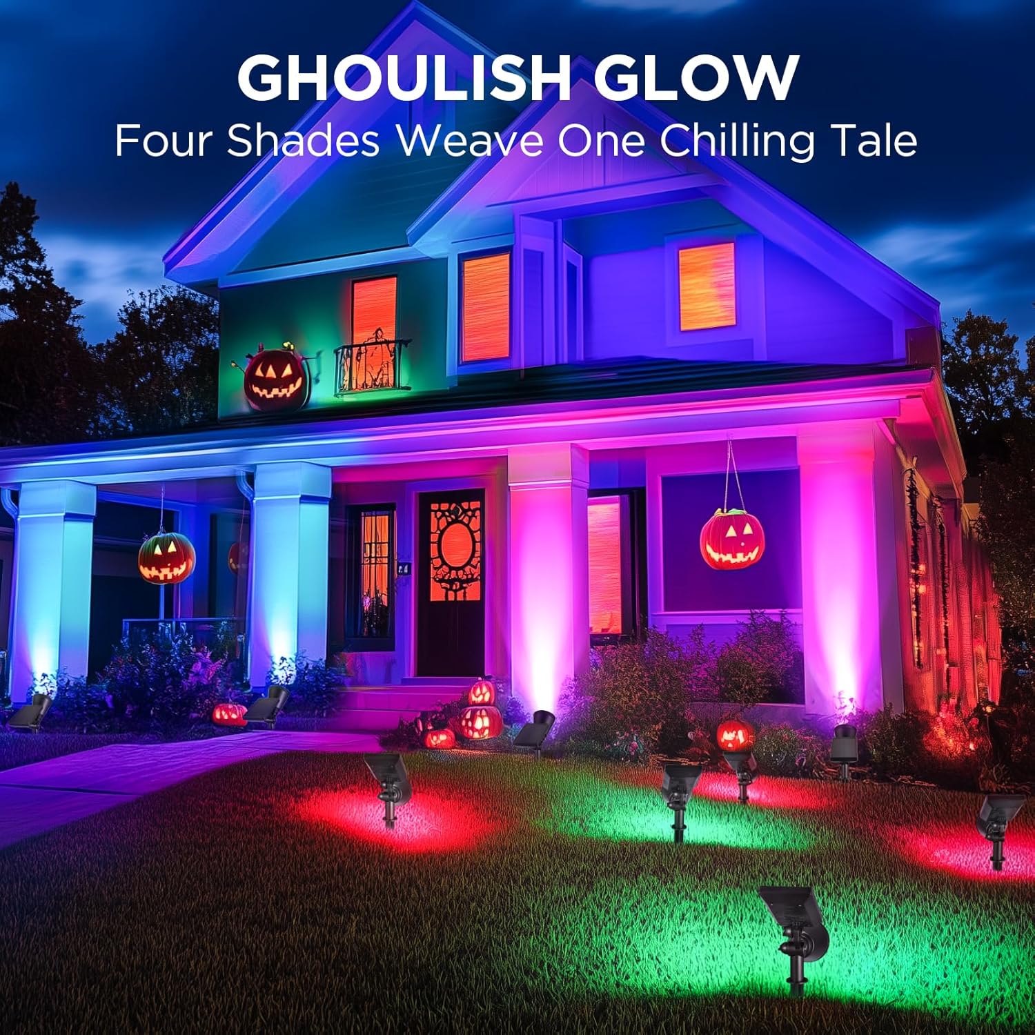 - Reminder: Package includes one fixed red, one green, one blue, and one violet-purple spotlight - all with non-adjustable, permanent colors designed to work in harmonious combination. This carefully engineered quartet of distinct hues creates versatile lighting effects, from vibrant festive displays to dramatic atmospheric ambiance, with no rotation or color adjustment required for immediate impactful illumination.