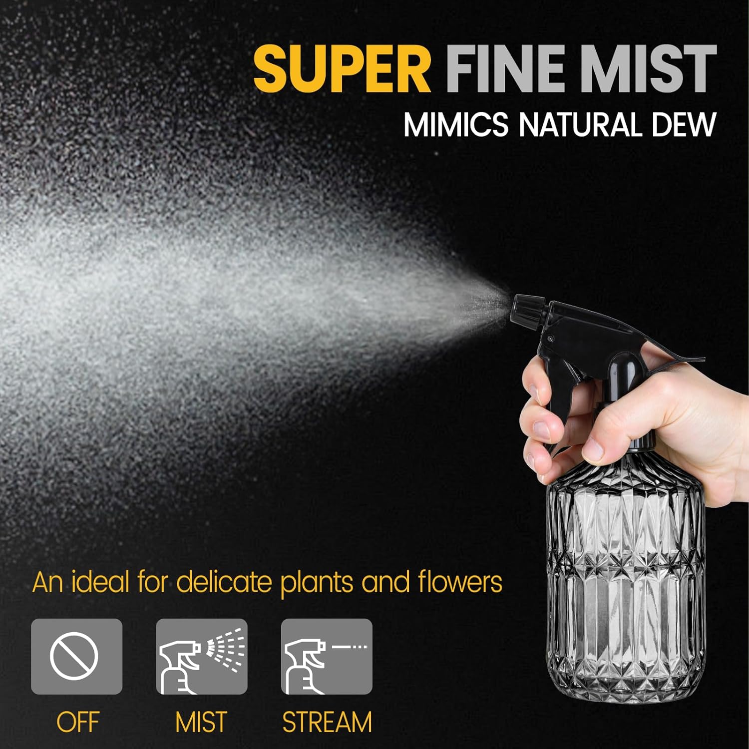 - [ Gentle and Even Spray ] The fine mist simulates natural dew, protecting leaves from impact and making it ideal for delicate plants and flowers. Such as succulent plants, herbs, ferns, orchids, cactus etc.