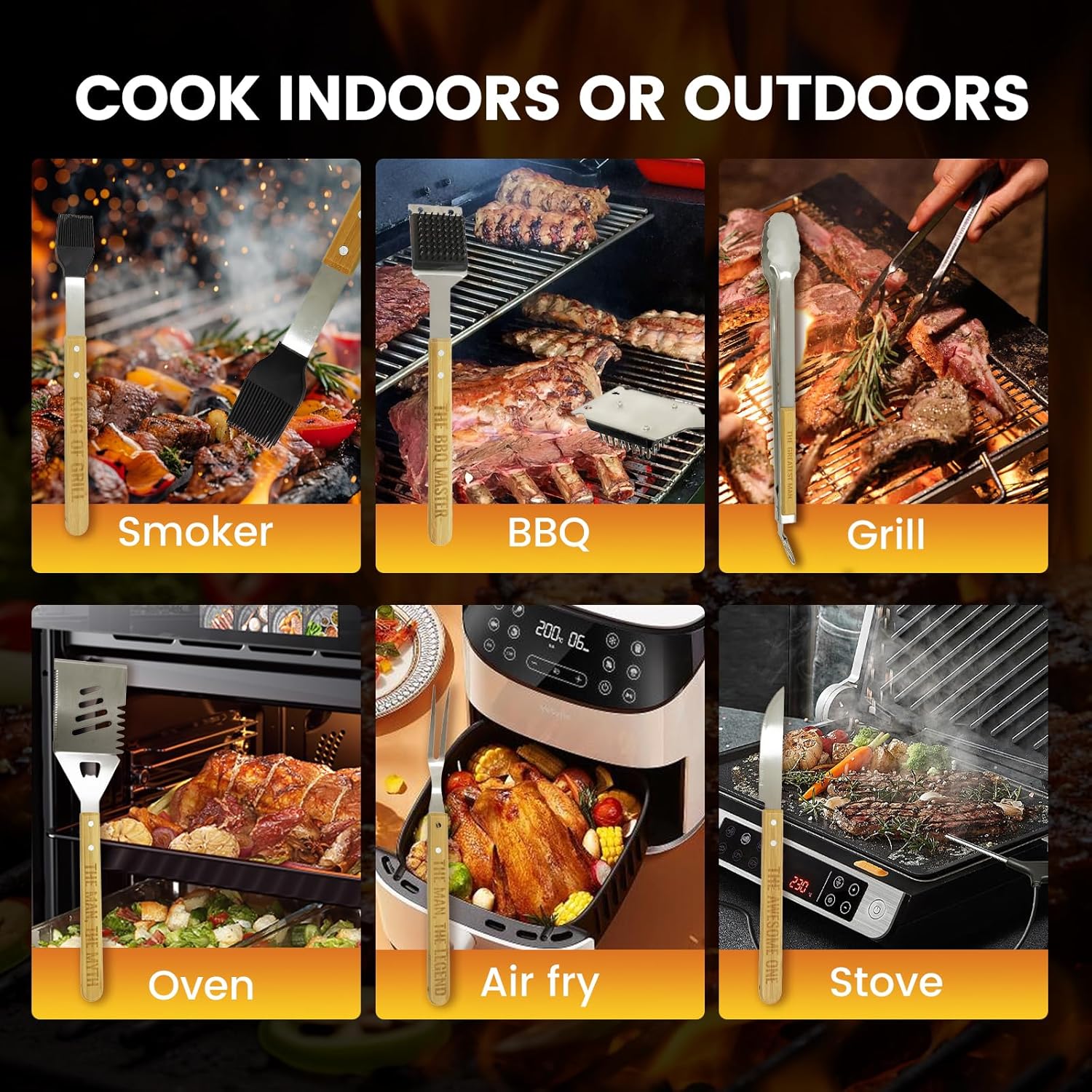 - 【Premium 304 Stainless Steel】Grill utensils set is made from extra-thick, solid 304 stainless steel, ensuring exceptional durability, heat resistance, and rust resistance. This means no more rusting, bending, or breaking. They're also dishwasher-safe, so you can grill hands-free and effortlessly.