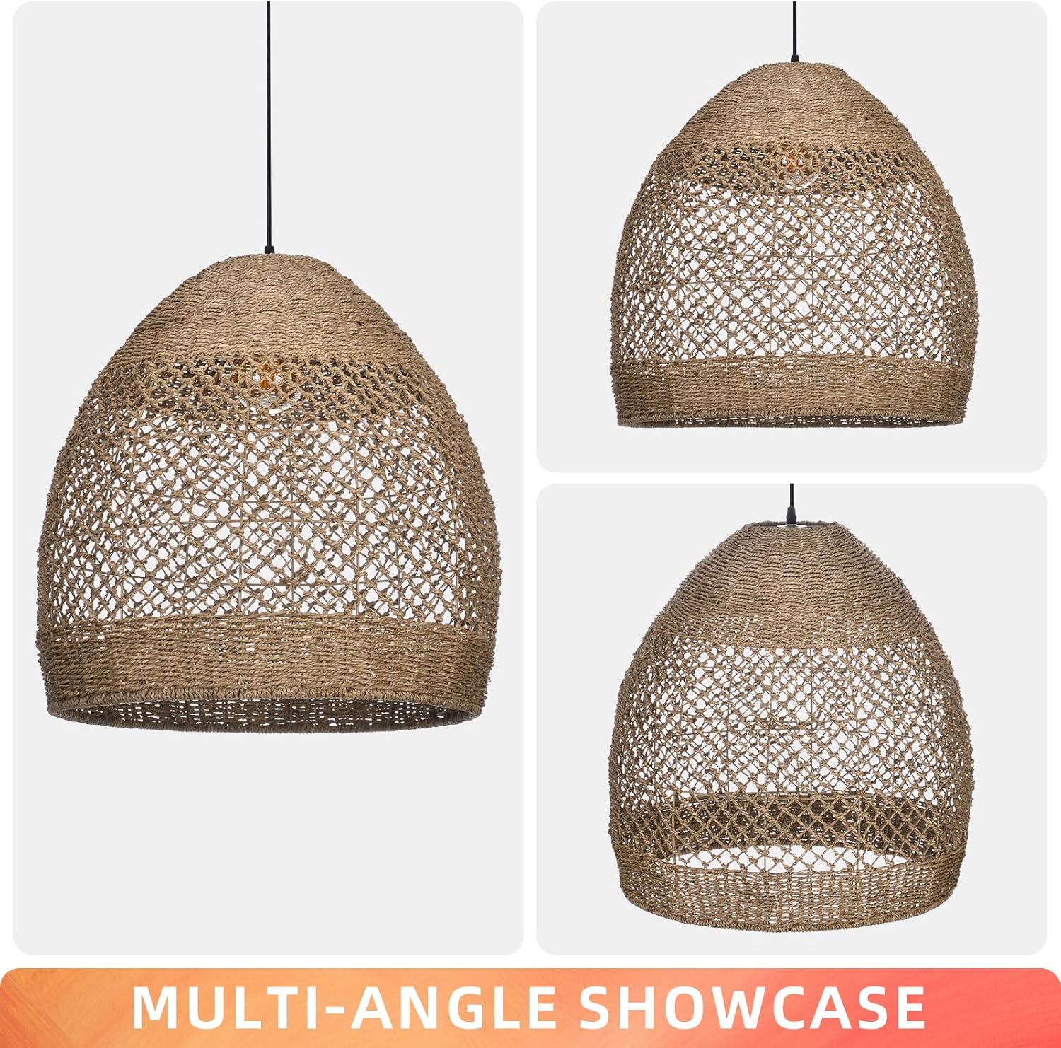 Arturesthome Rustic Rattan Pendant Light,Basket Hanging Light Ceiling Lamp for Dining Room,23.6" Farmhouse Wicker Chandelier for Living Room Foyer Bedroom Hallway