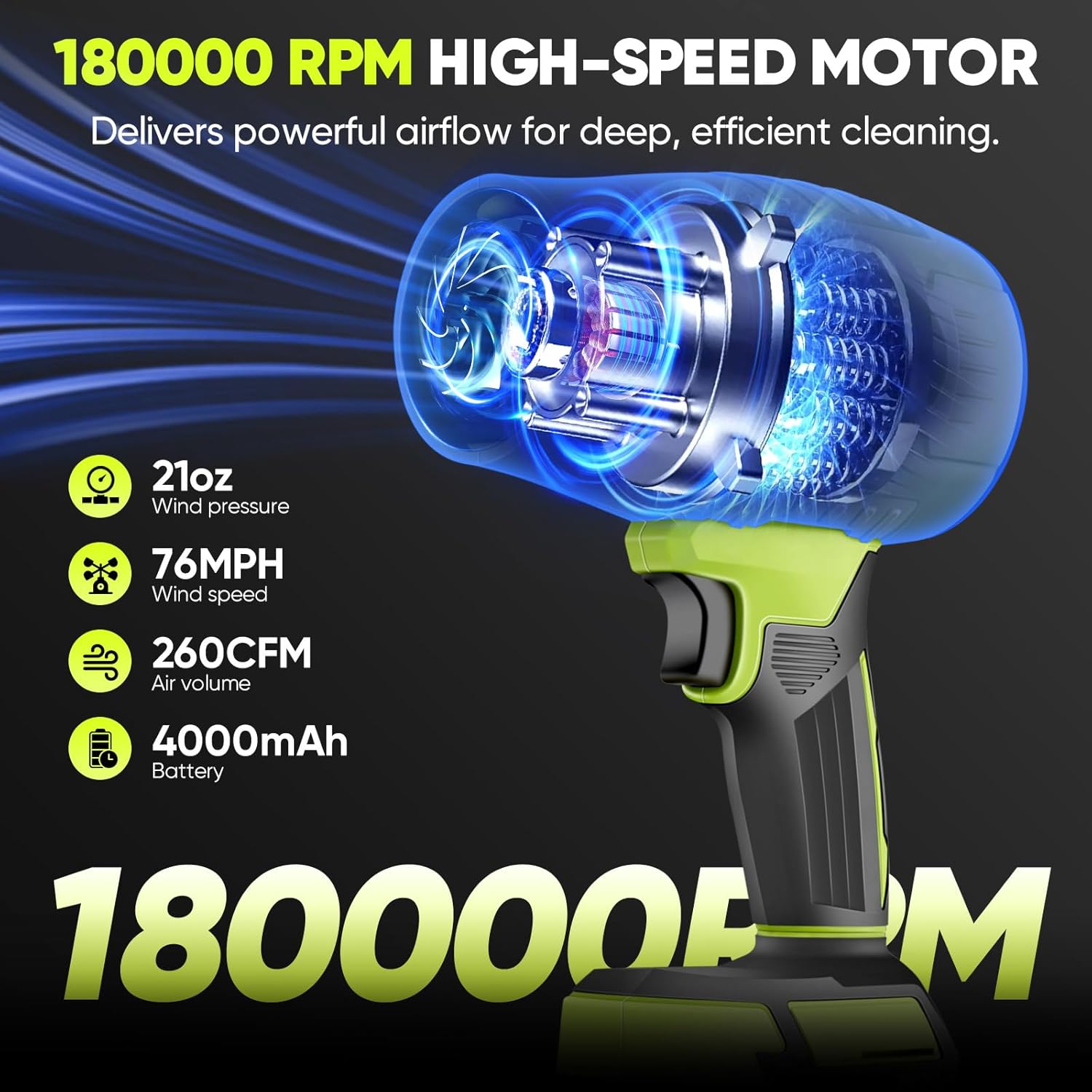- ăUnstoppable Wind PowerăSakerplus portable dust cleaner packs serious power with its 180,000 RPM high-speed motor that delivers a massive 260 CFM air volume - enough to sweep entire driveways in minutes while maintaining precise control. The tremendous airflow moves leaves, debris and dust effortlessly, while the 76 MPH wind speed ensures nothing stays put. Combined with 21 oz wind pressure, the leaf blower cordless tackles everything from light dust to stubborn wet leaves with ease.