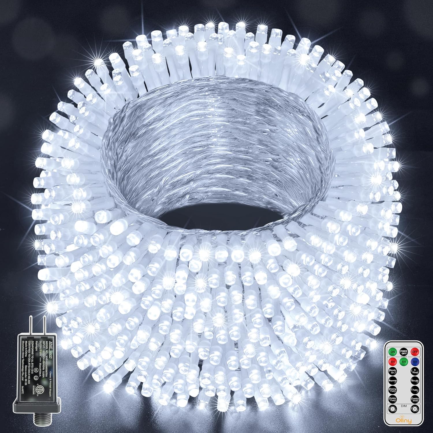 Ollny Christmas Lights Outdoor Waterproof, 1000LED 328FT Super Long String Lights with Remote 3 Timer, Plug in 8 Modes Fairy Light for Outside House Bedroom Xmas Decorations, Cool White