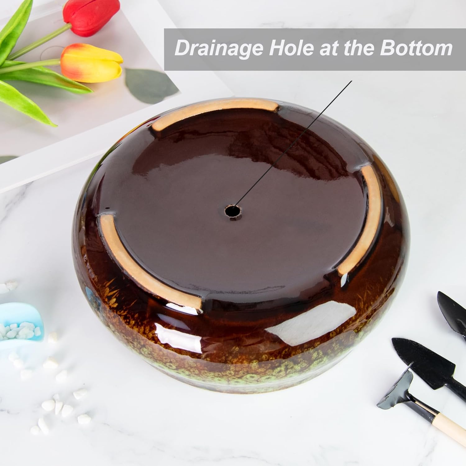 - 【Drainage Hole】A small drainage hole at the bottom for drainaging water, which is essential for keeping inside water in a balanced level, perfect for all kinds of indoor plants and desk flowers