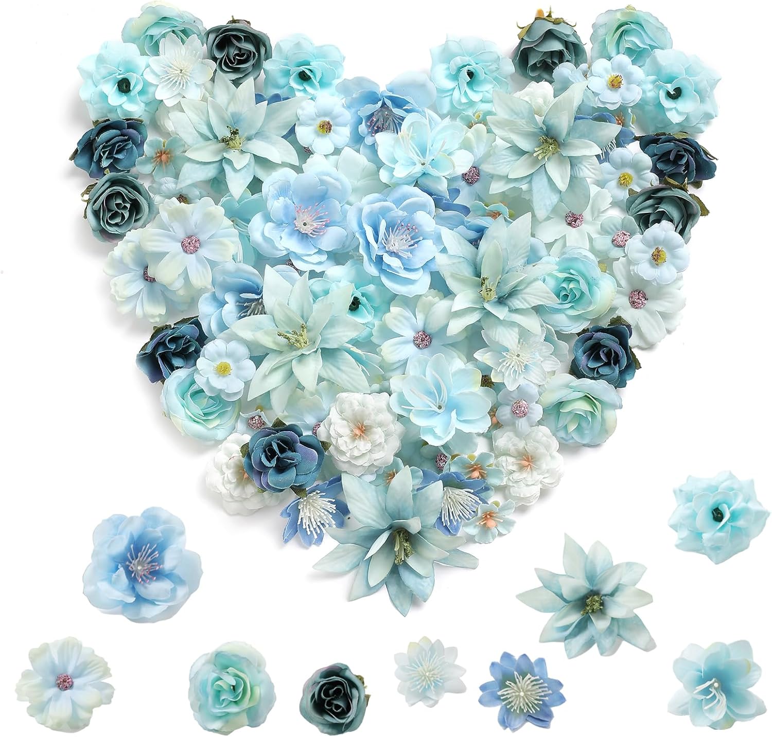 - Package Details:0.9inch mini daisy flowers x30pcs;1.1inch White wild rose x10pcs;1.85inch Star-Talk Flower x5pcs;2.16inch orchid x5pcs;1.96inch camellia flower x10pcs;1.37inch mini rose x5pcs;1.88inch Scottish Rose x5pcs;2.55inch gardenia rose x5pcs;1.37inch peonies x5pcs,1.57inch White wild rose x5pcs;3inch orchid x5pcs;2.73inch orchid x10pcs;