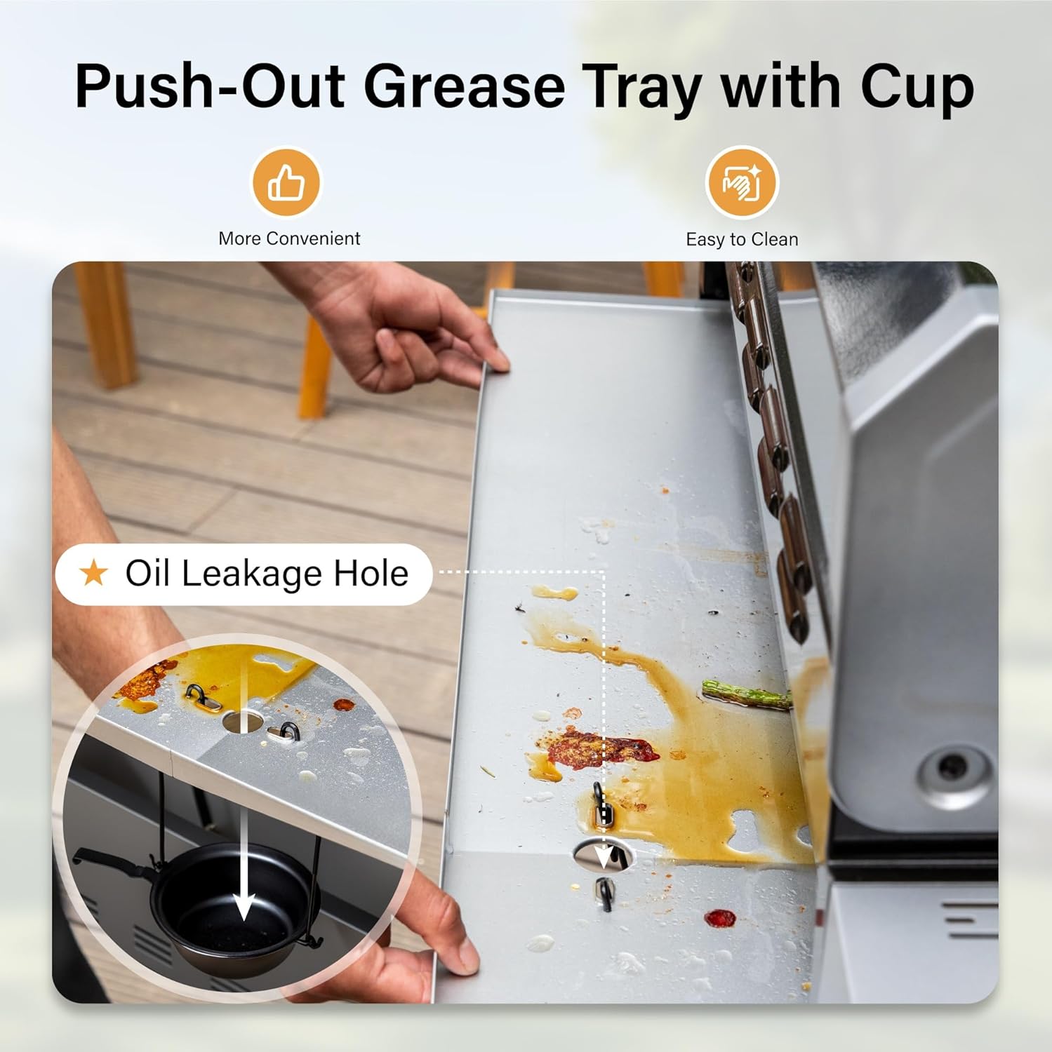 - šš®šš-šš¹š²š®š» šš¼š»šš²š»š¶š²š»š°š²: The slide-out grease tray and removable drip pan make cleanup a breeze. Spend less time scrubbing and more time enjoying your gas BBQ grill - perfect for busy hosts who love hassle-free grilling