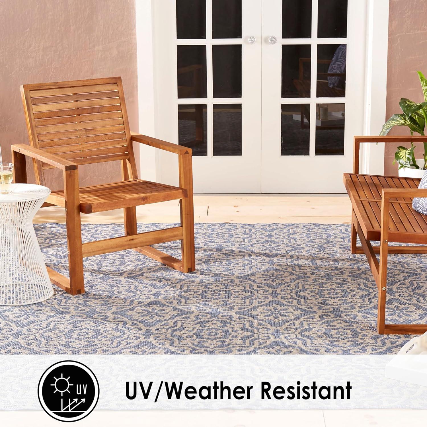 Nicole Miller New York Patio Country Julia Transitional Geometric Indoor/Outdoor Area Rug, Blue/Grey, 3'11"x5'2"