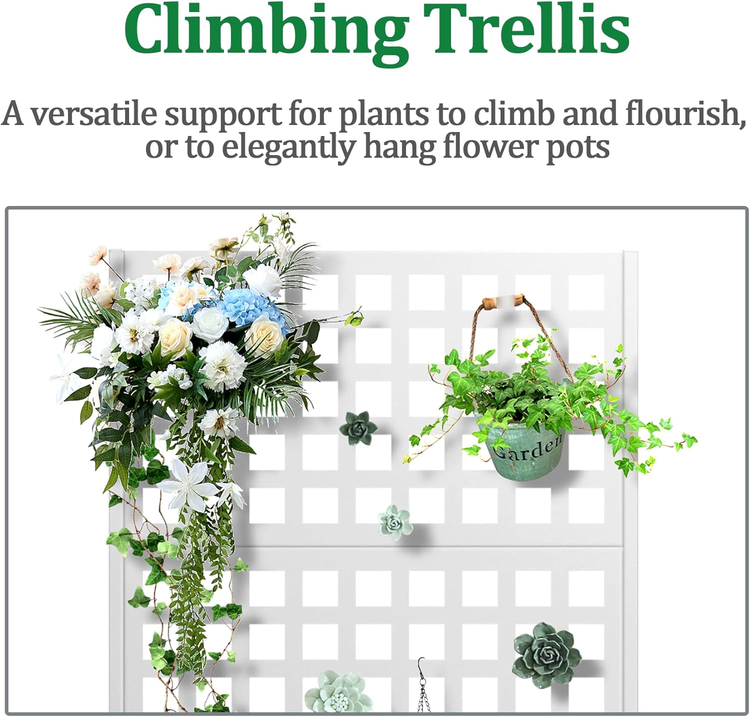 Metal Raised Garden Bed with Trellis, 2 in 1 Trellis with Planter Box & Privacy Screen for Climbing Plants, Vine, Outdoor Standing Flower Beds with Drainage Holes, 35.4"L x 16.7"W x 70.8"H, White