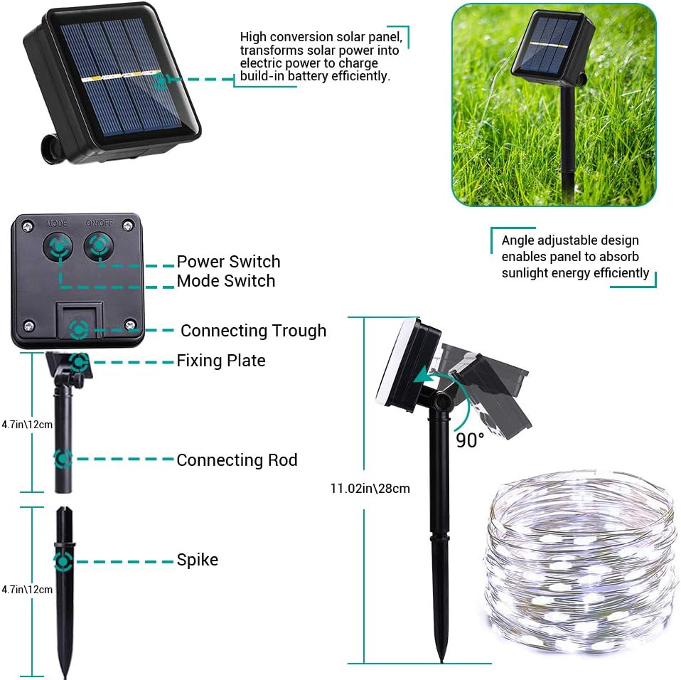 - Flexible DIY Fairy String Lights: On 39ft ultra-thin and high-quality bendable silver wire, the solar string lights conform to any shape you want, with steady 360 degree viewing angle which illuminate in every direction. Also, they easy to store and ready for next use
