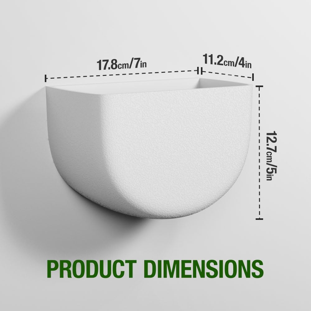 2 Pack Wall Hanging Planter Pots for Indoor and Outdoor Plants, 7 Inch Half-Moon-Shaped Plastic Wall Planter, Wall Mounted Succulent Planters (White)