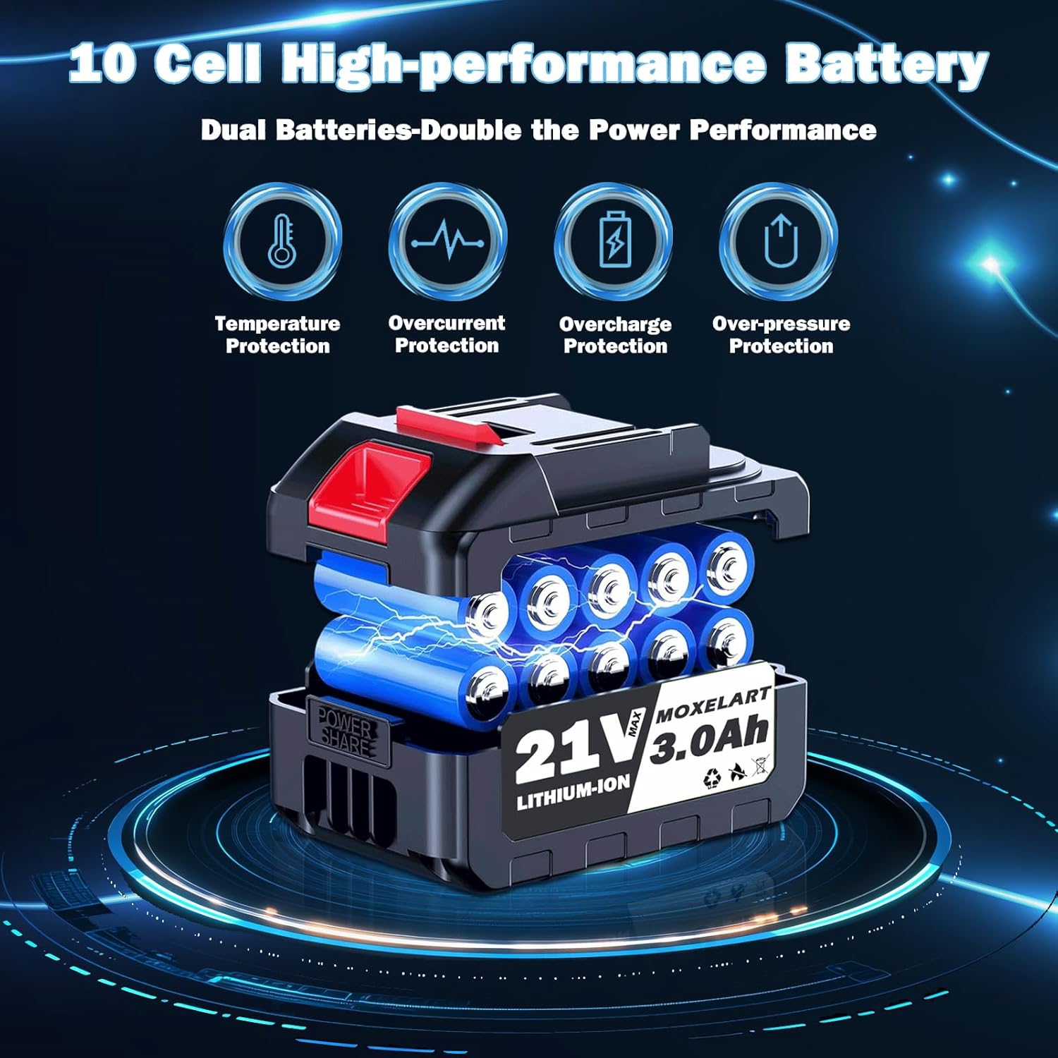 - ăAdjustable SpeedăMoxelart portable cordless leaf blower can be infinitely adjusted in speed. When we press the switch, the wind will become stronger as the pressure increases, and decrease as the pressure lightens. When the pressure is at maximum, high-speed airflow of up to 50M/S or higher can be generated. We can easily control the wind speed and meet different usage needs.